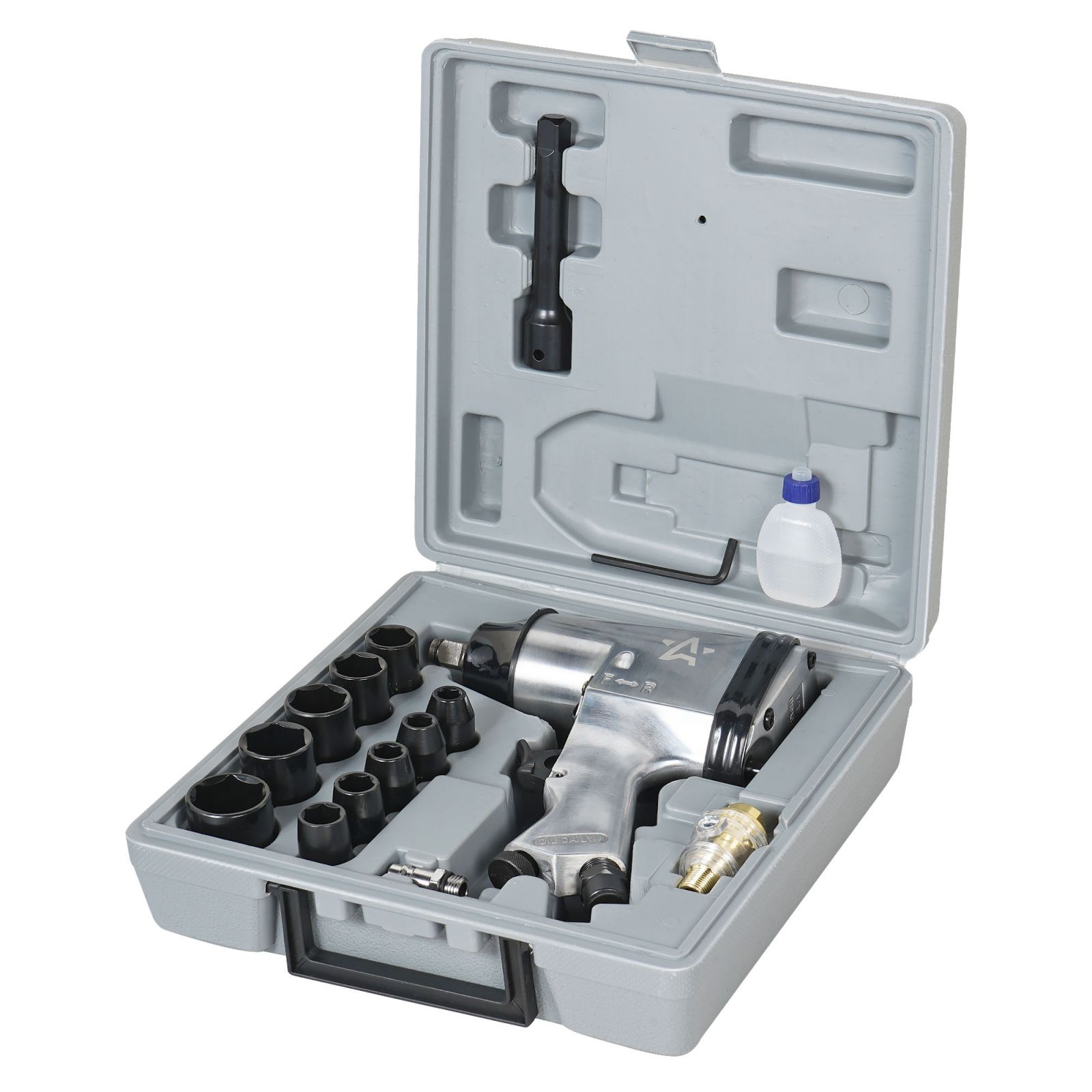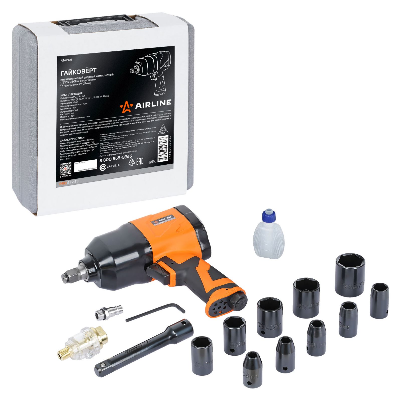 Гайковерт пневматический ударный композитный 1/2"DR 330Нм PRO с головками 17пр. (9-27мм), кейс (ATAZ101)