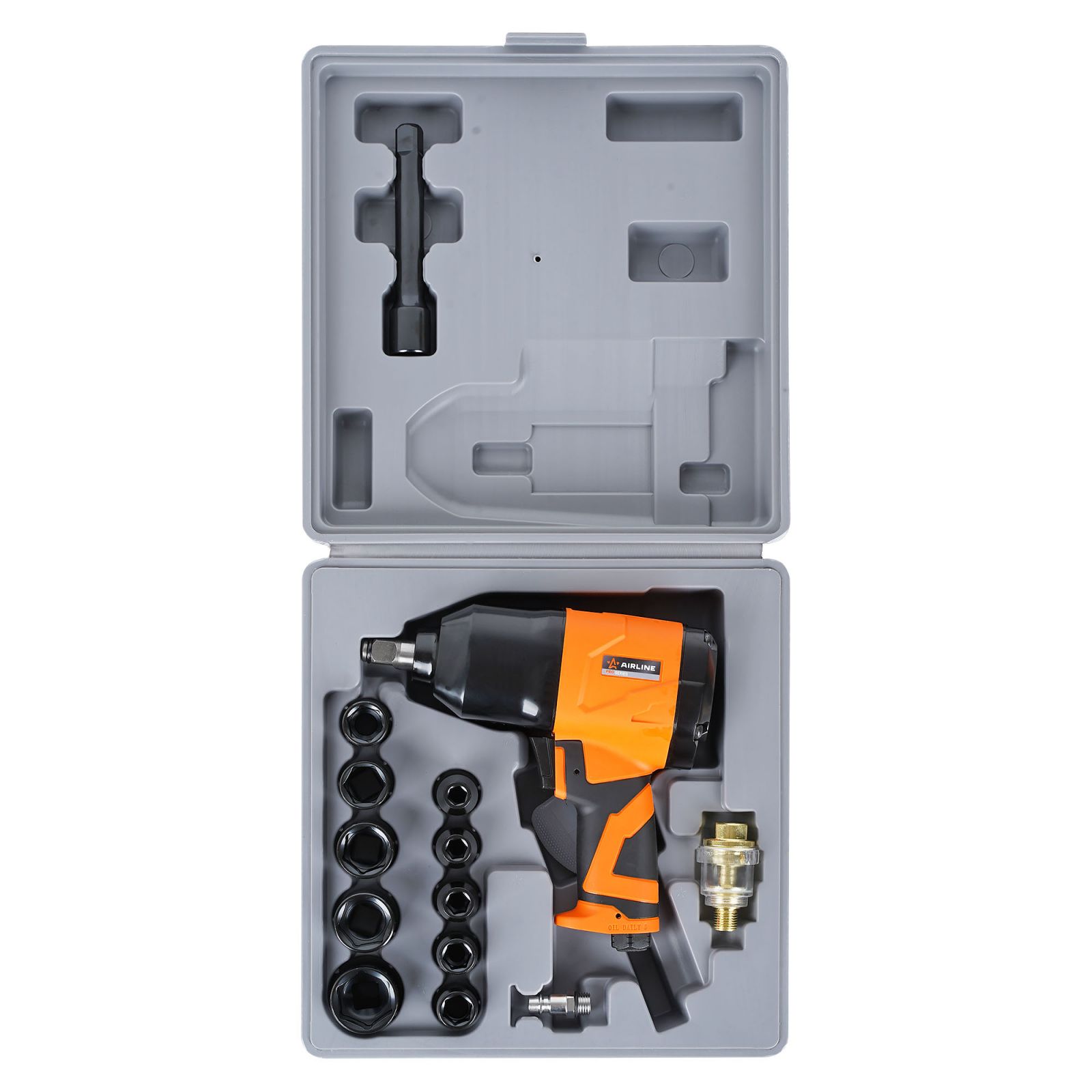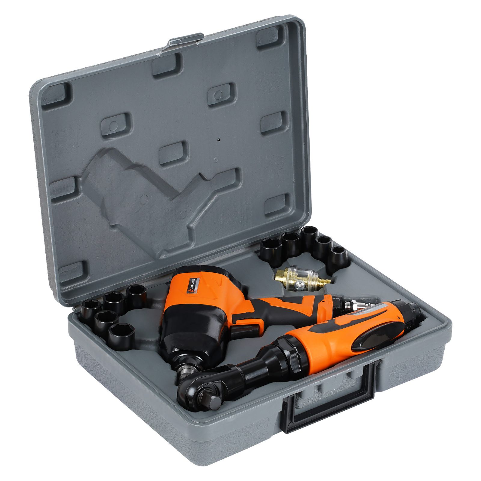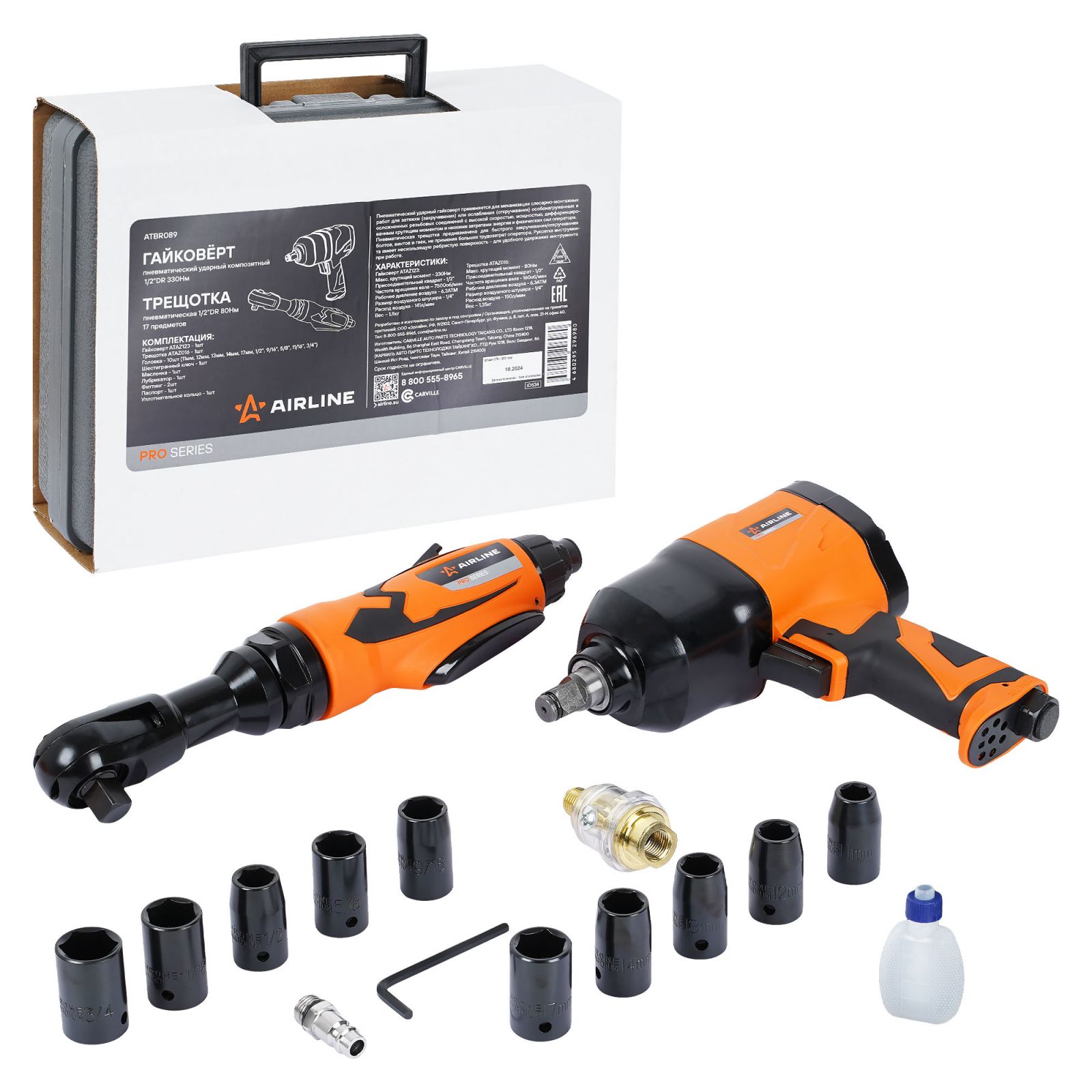 Гайковерт пневм.ударн. композит. 1/2"DR 330Нм, трещотка пневм. 1/2"DR 80Нм PRO 17пр. кейс (ATBR089)