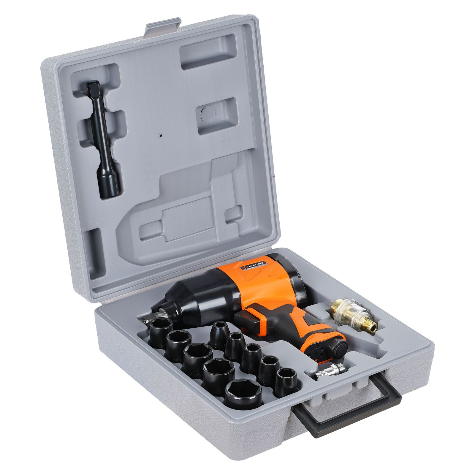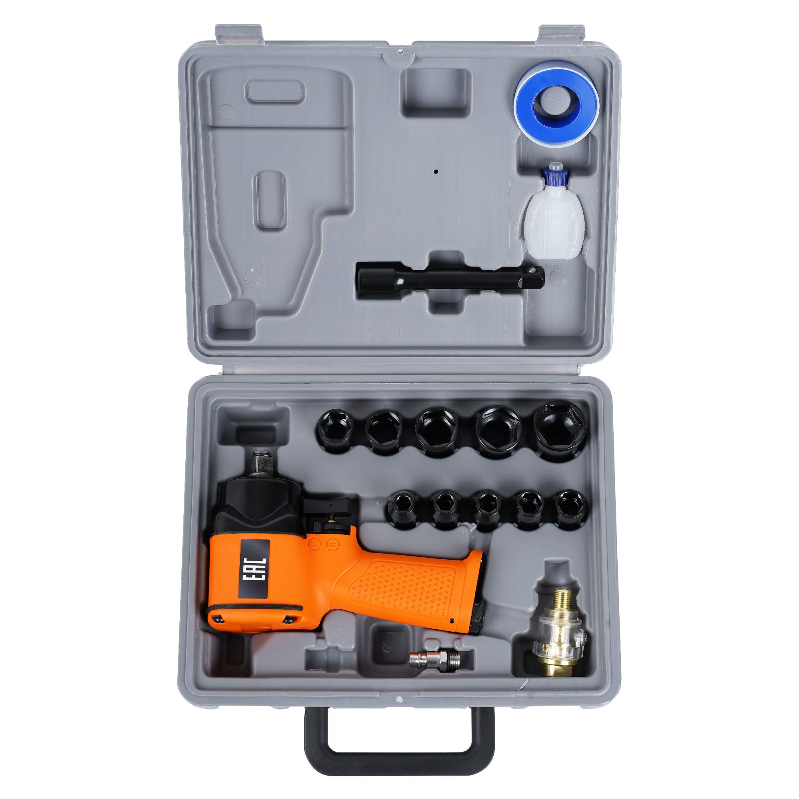 Гайковерт пневматический ударный композитный 1/2"DR 610Нм PRO с головками 17пр. (9-27мм), кейс (ATAZ124)