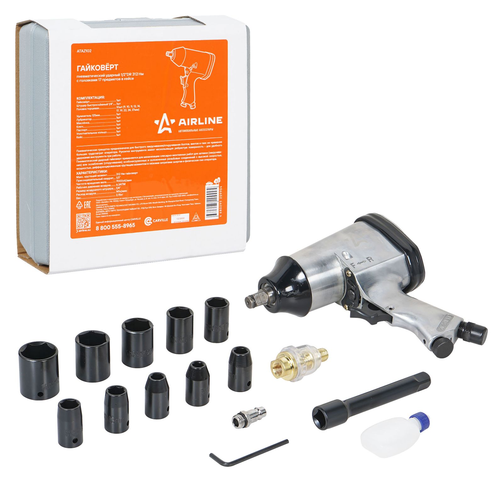 Гайковерт пневматический ударный 1/2"DR 330Нм, набор с головками 17 пр. кейс (ATAZ102)