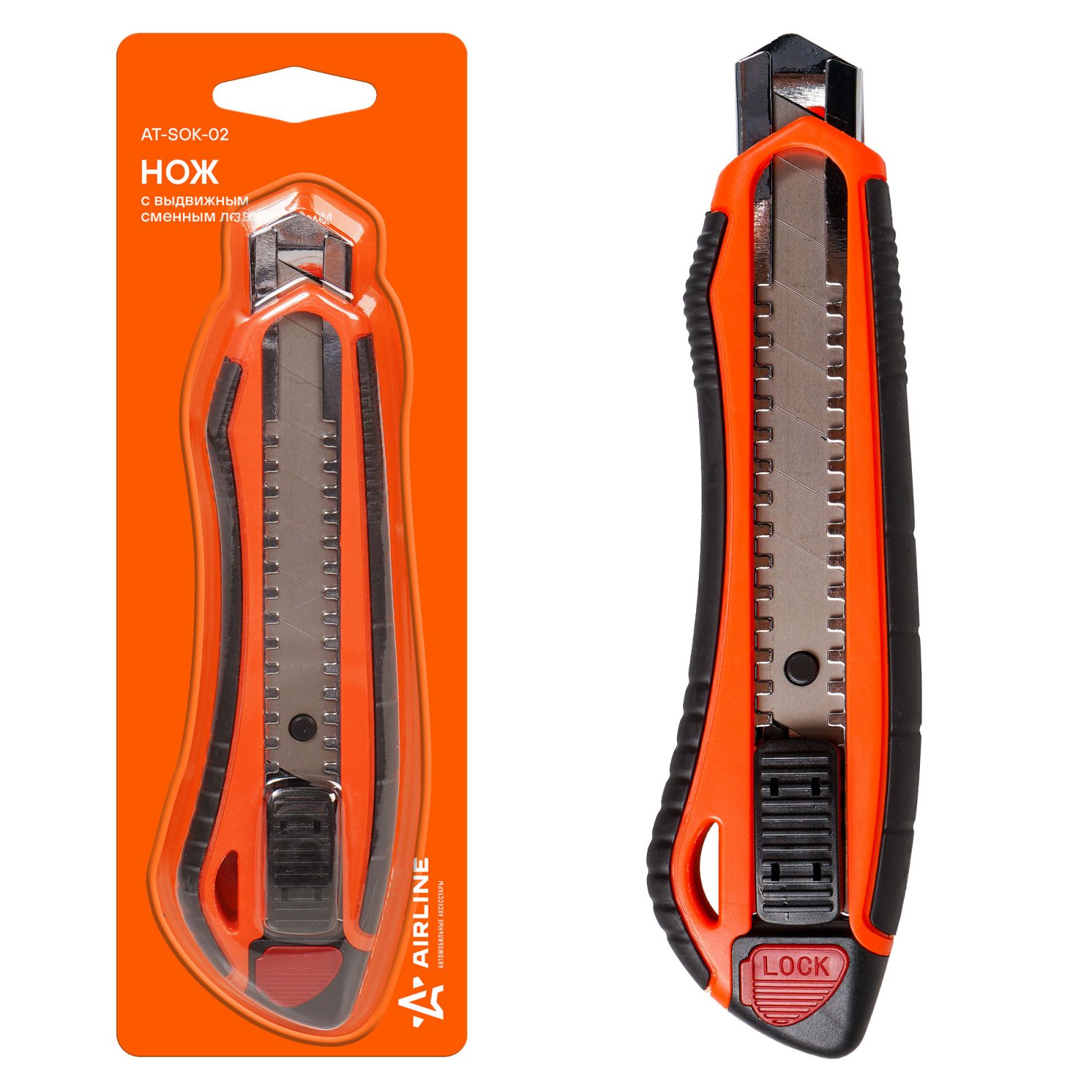 Нож с выдвижным сменным лезвием 18мм (AT-SOK-02)