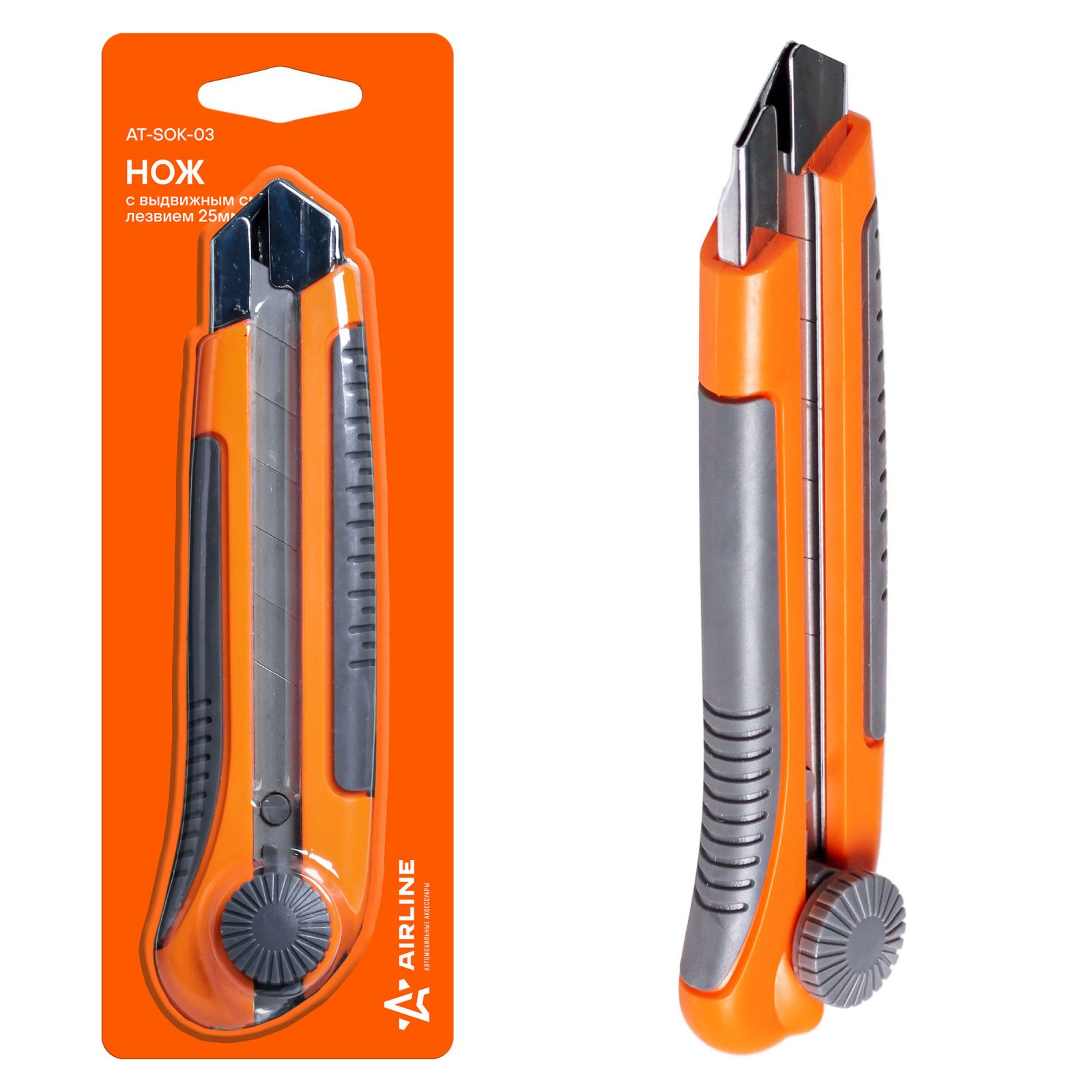 Нож с выдвижным сменным лезвием 25мм (AT-SOK-03)