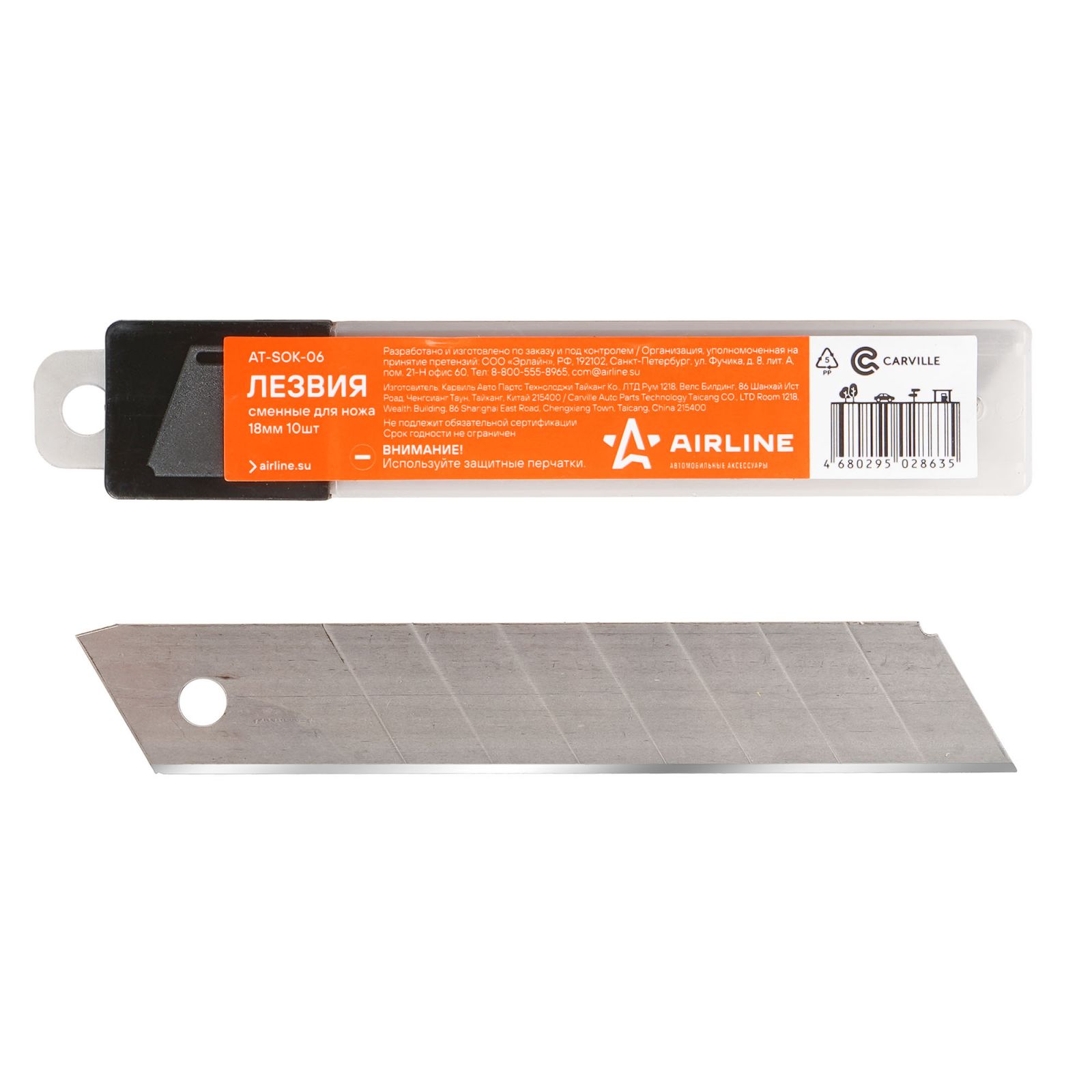 Лезвия сменные для ножа 18мм 10шт (AT-SOK-06)