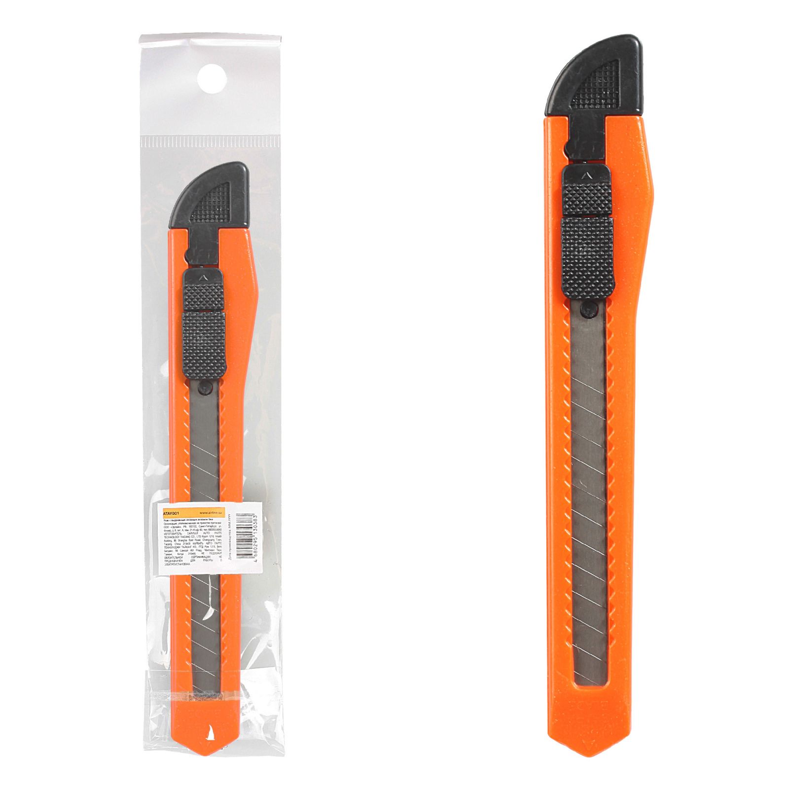 Нож с выдвижным сменным лезвием пластик 9мм (ATAY001)