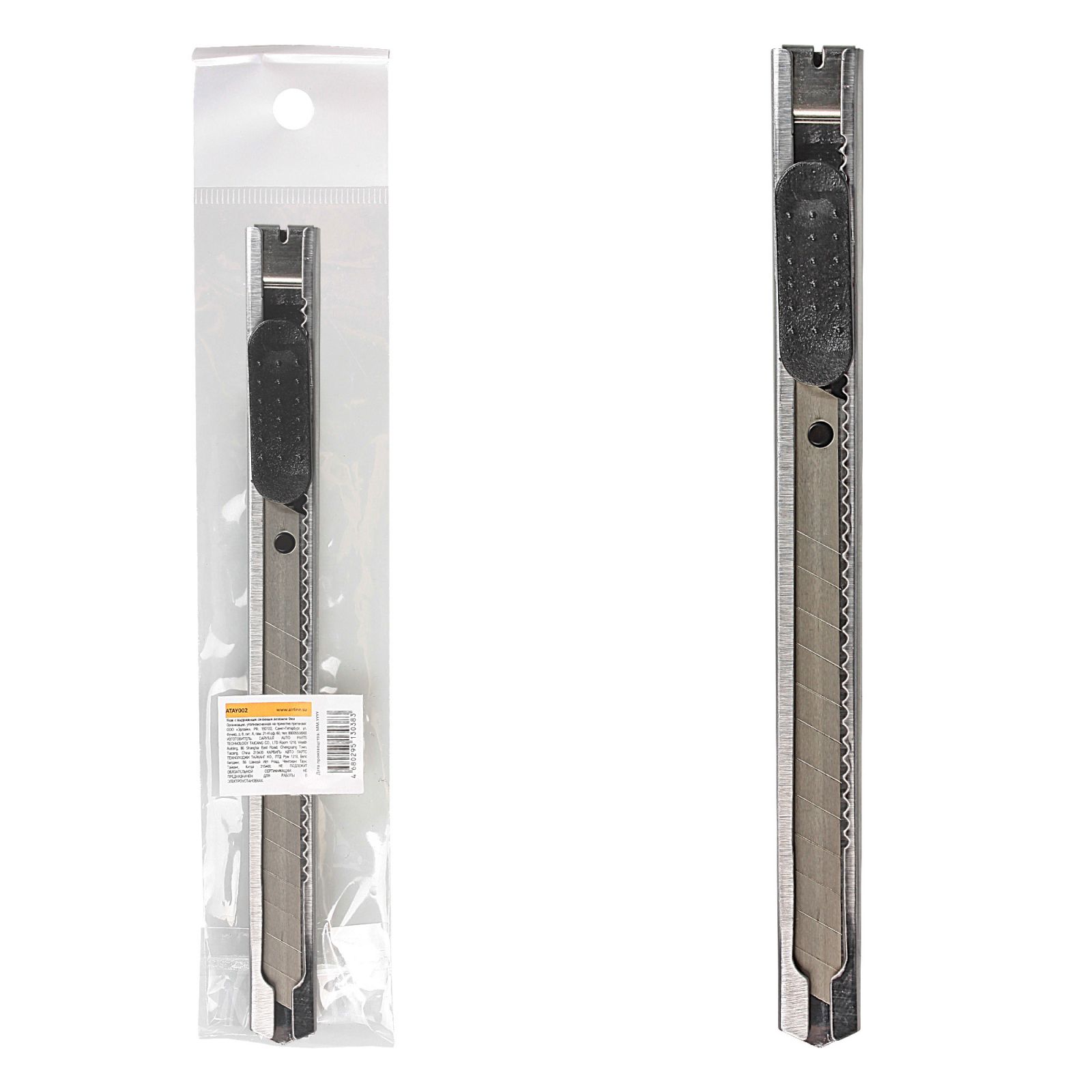 Нож с выдвижным сменным лезвием металл 9мм (ATAY002)