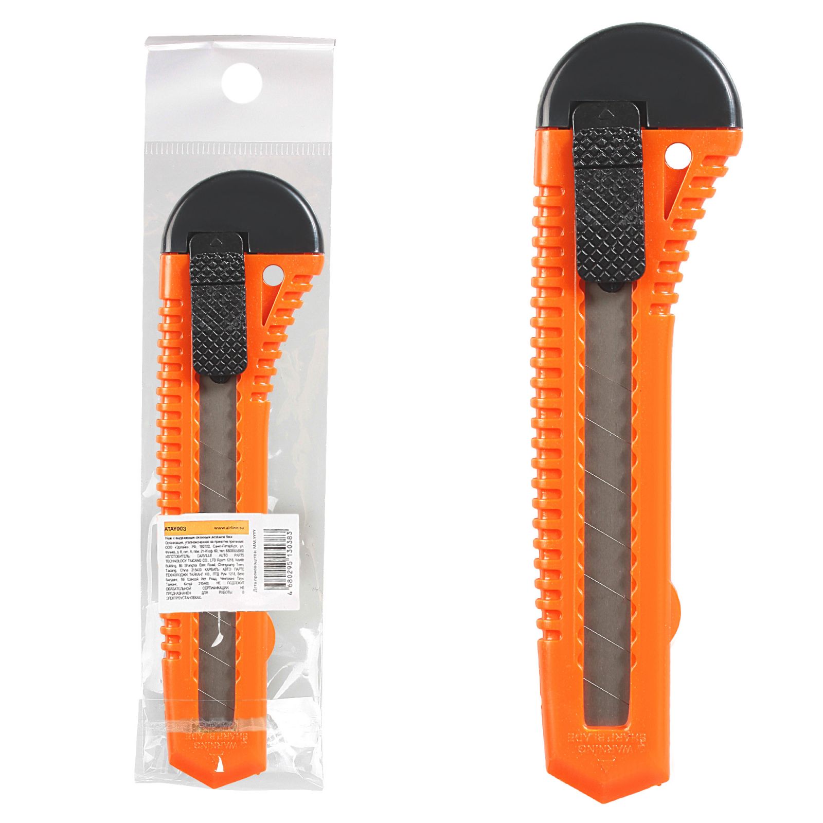 Нож с выдвижным сменным лезвием пластик 18мм (ATAY003)