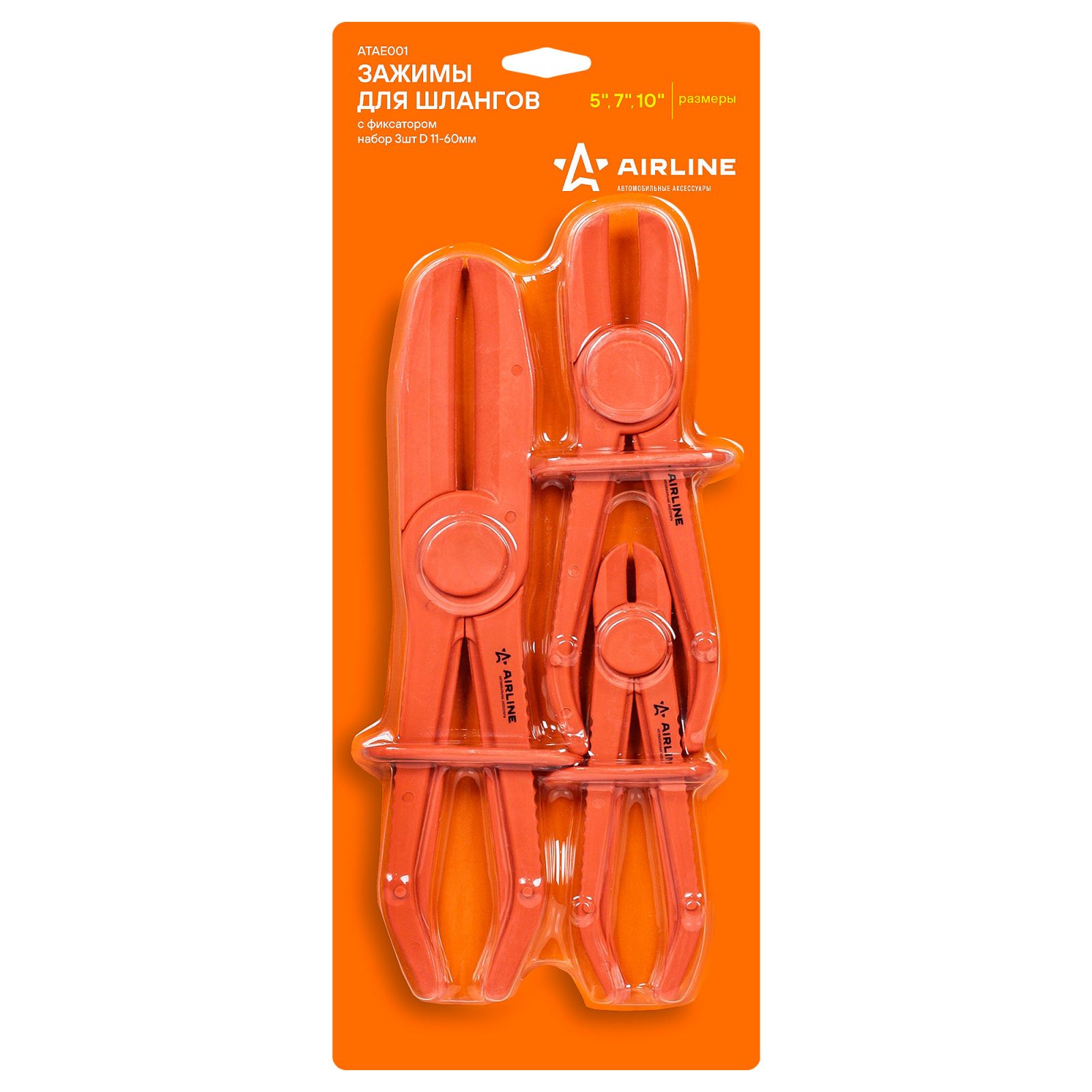 Зажимы для шлангов с фиксатором набор 3шт D 11-60мм (ATAE001)