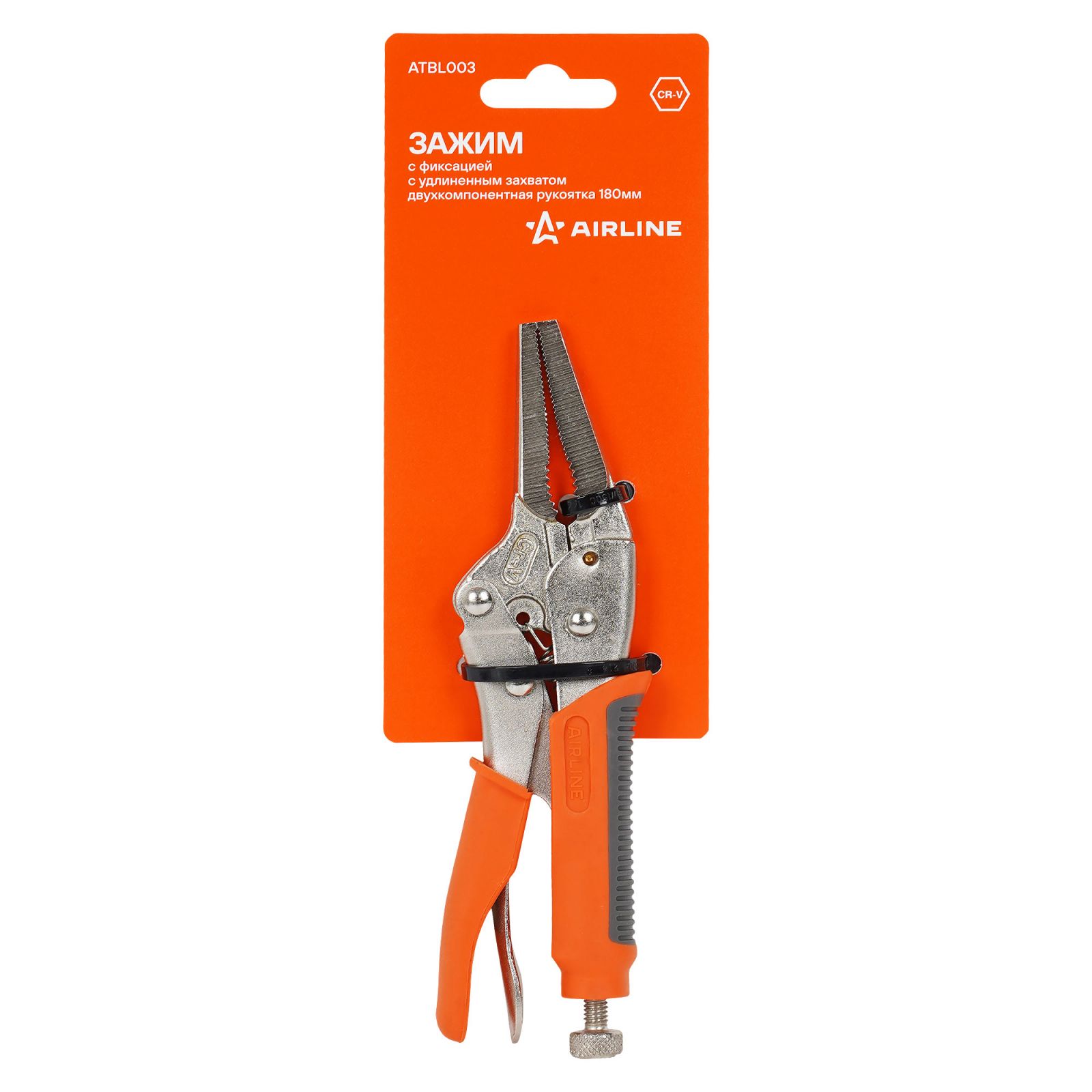Зажим с фиксацией с удлиненным захватом двухкомпонентная рукоятка 180мм (ATBL003)