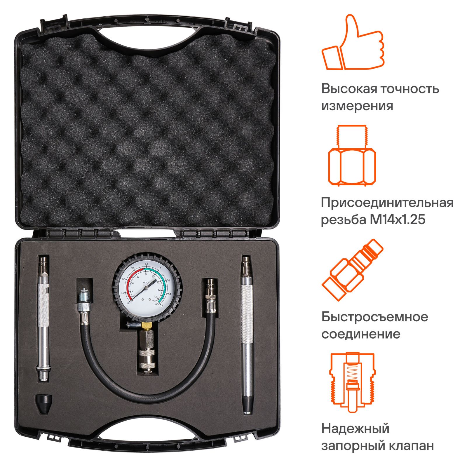 Компрессометр для бензиновых двигателей PRO, набор 5пр., пласт. кейс (ATAA010)