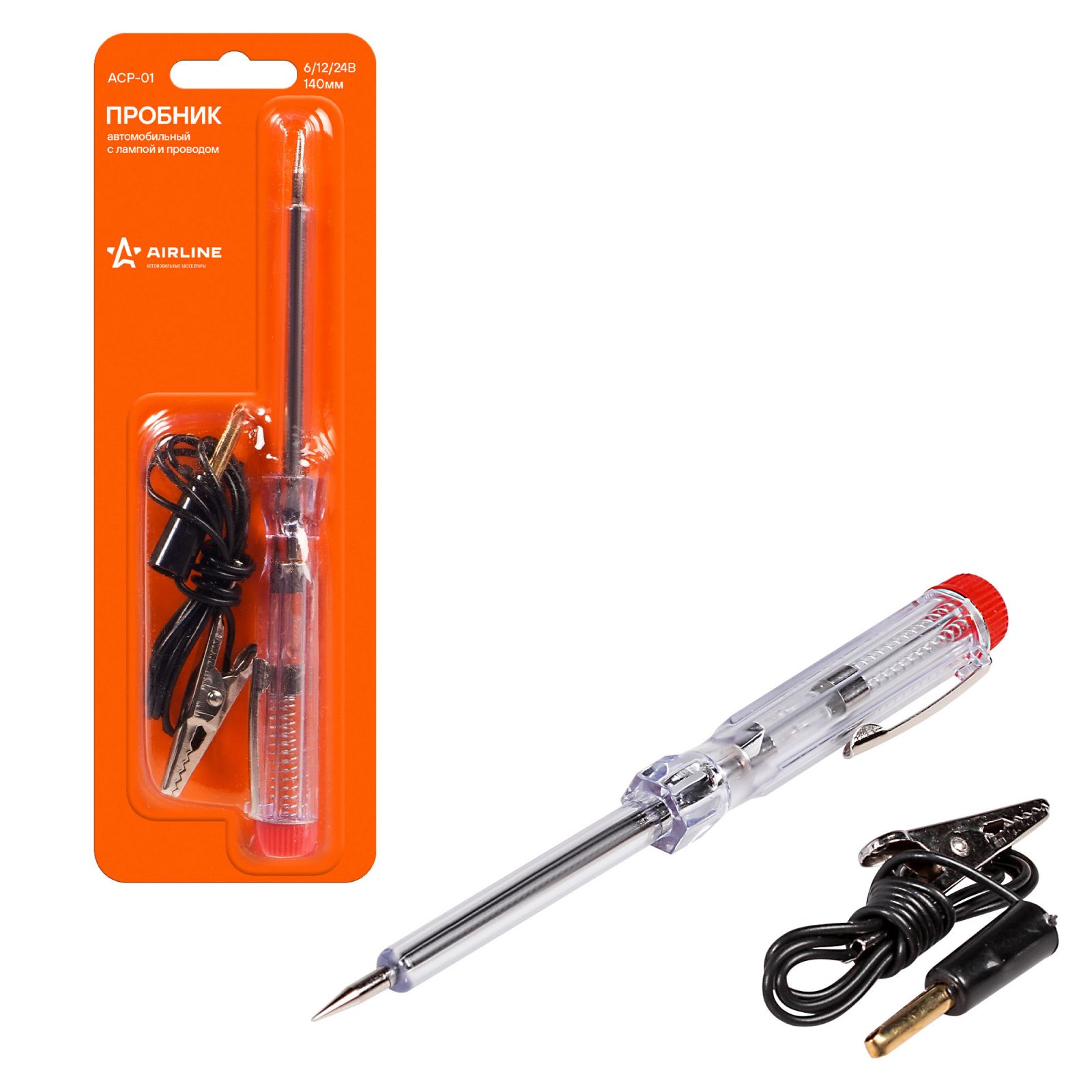 Пробник автомобильный с лампой и проводом пластик/металл 6/12/24В 140мм (ACP-01)