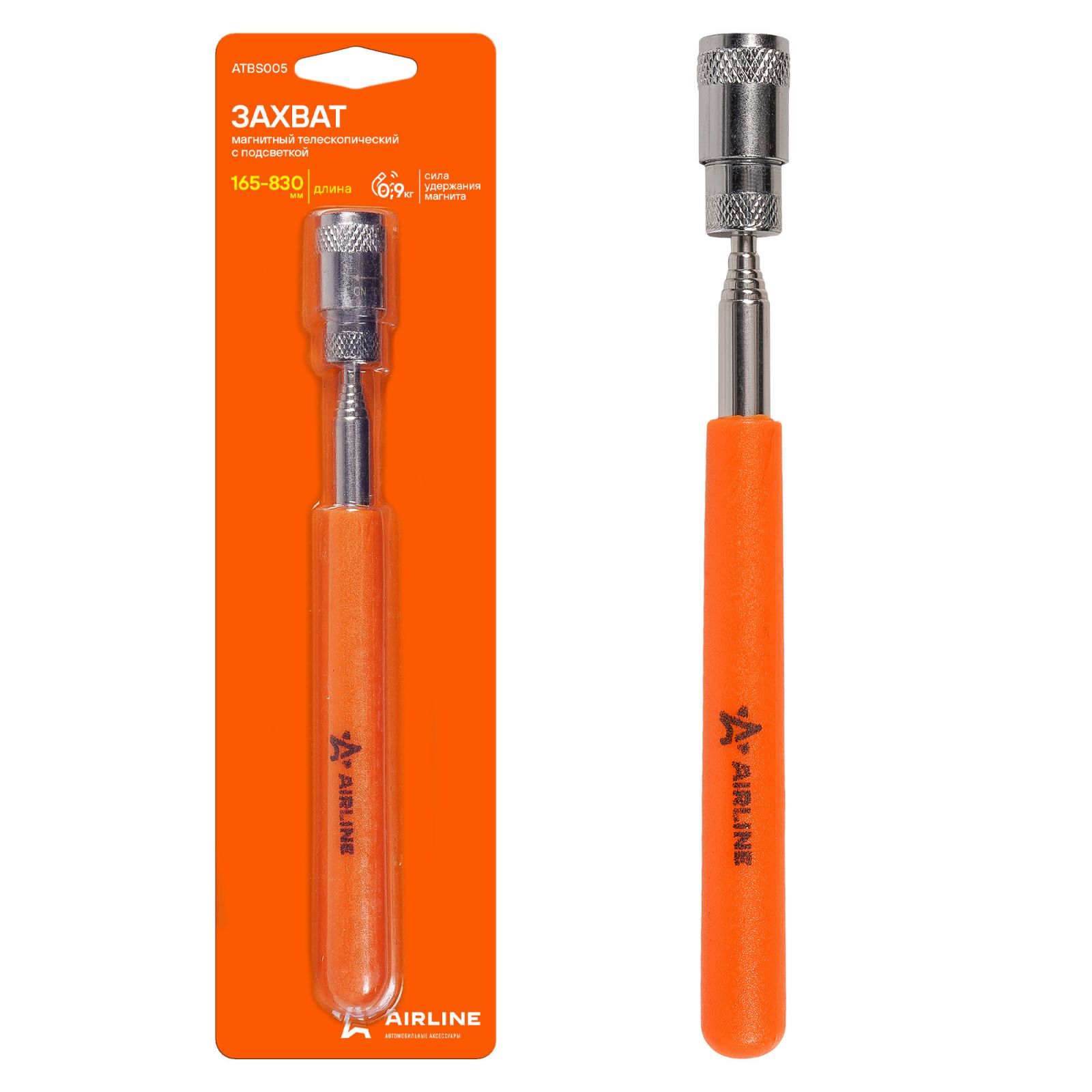 Захват телескопический магнитный с подсветкой, L=165-830мм (ATBS005)