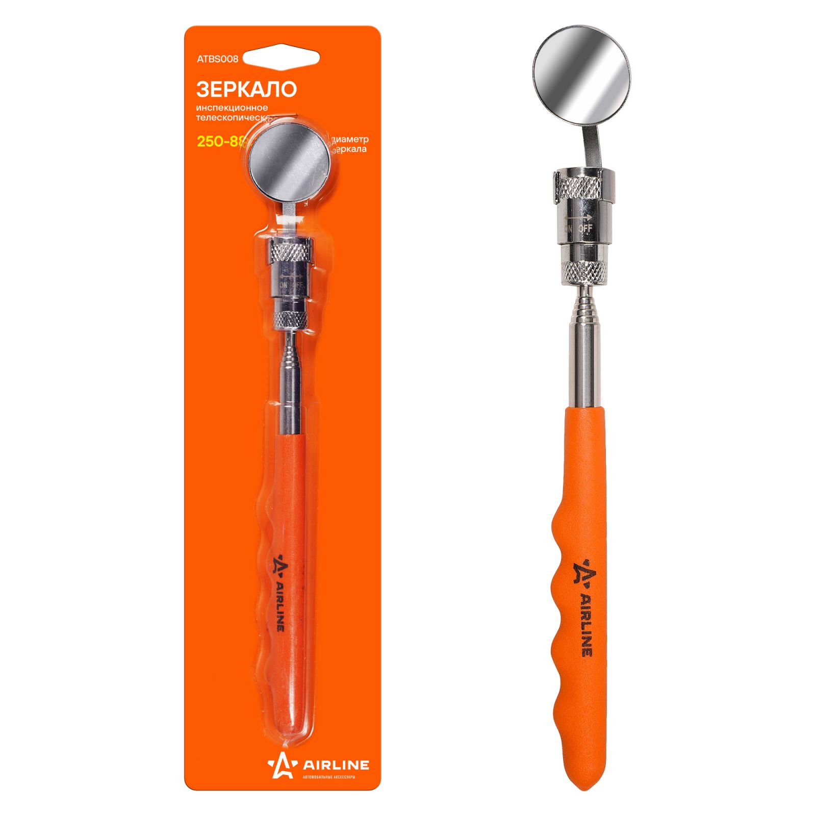 Зеркало инспекционное телескопическое с подсветкой подвижное, D=32мм, L=250-880мм (ATBS009)