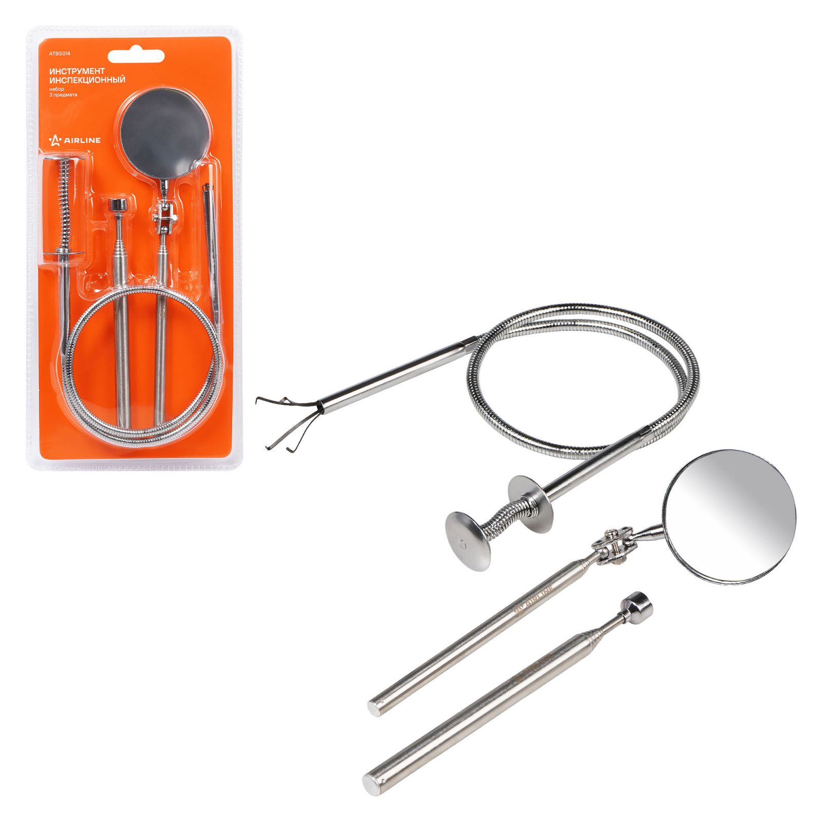 Инструмент инспекционный, набор 3пр. (захват телескоп., захват гибкий, зеркало) ATBS014