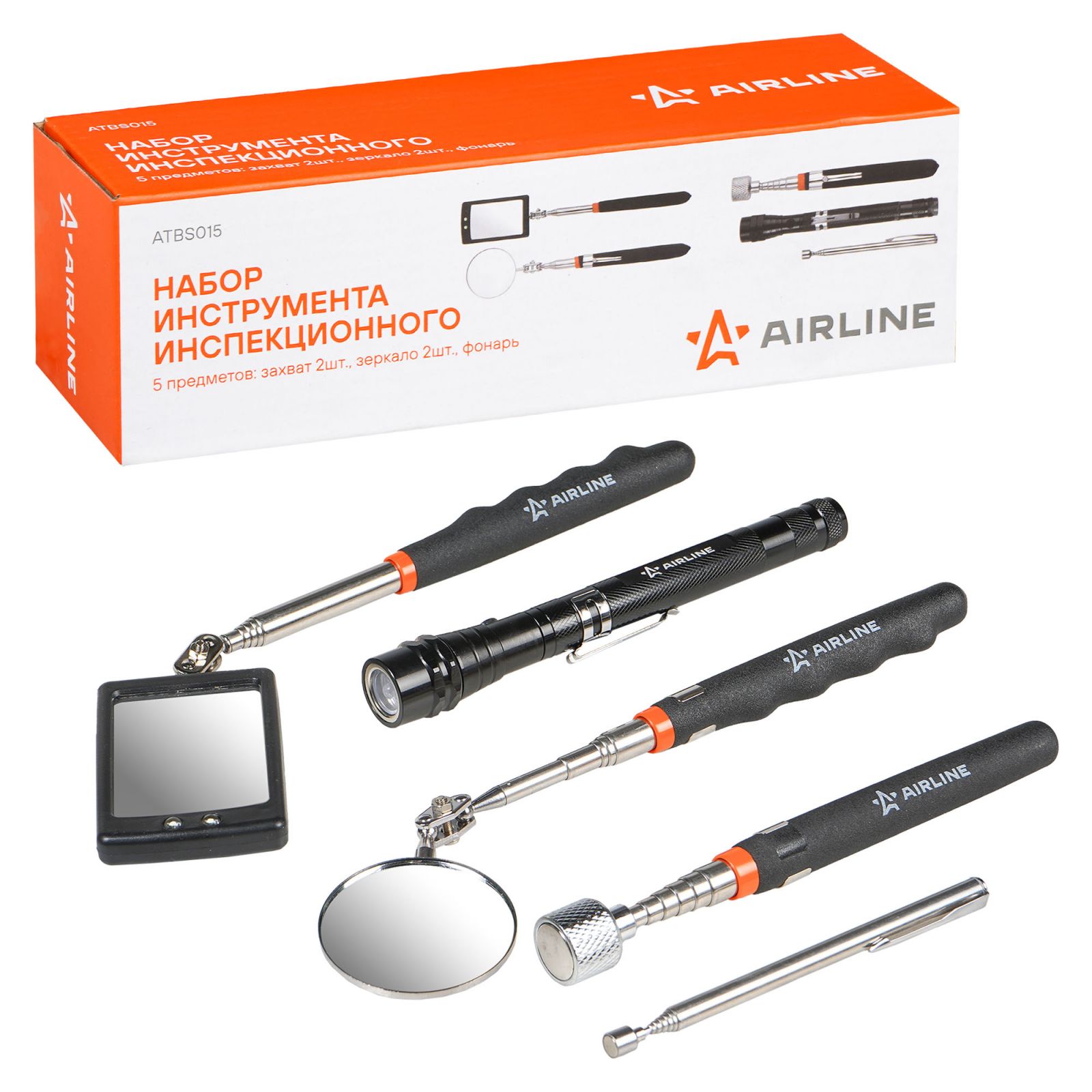 Инструмент инспекционный, набор 5 пр. (захват 2шт., зеркало 2шт., фонарь) (ATBS015)