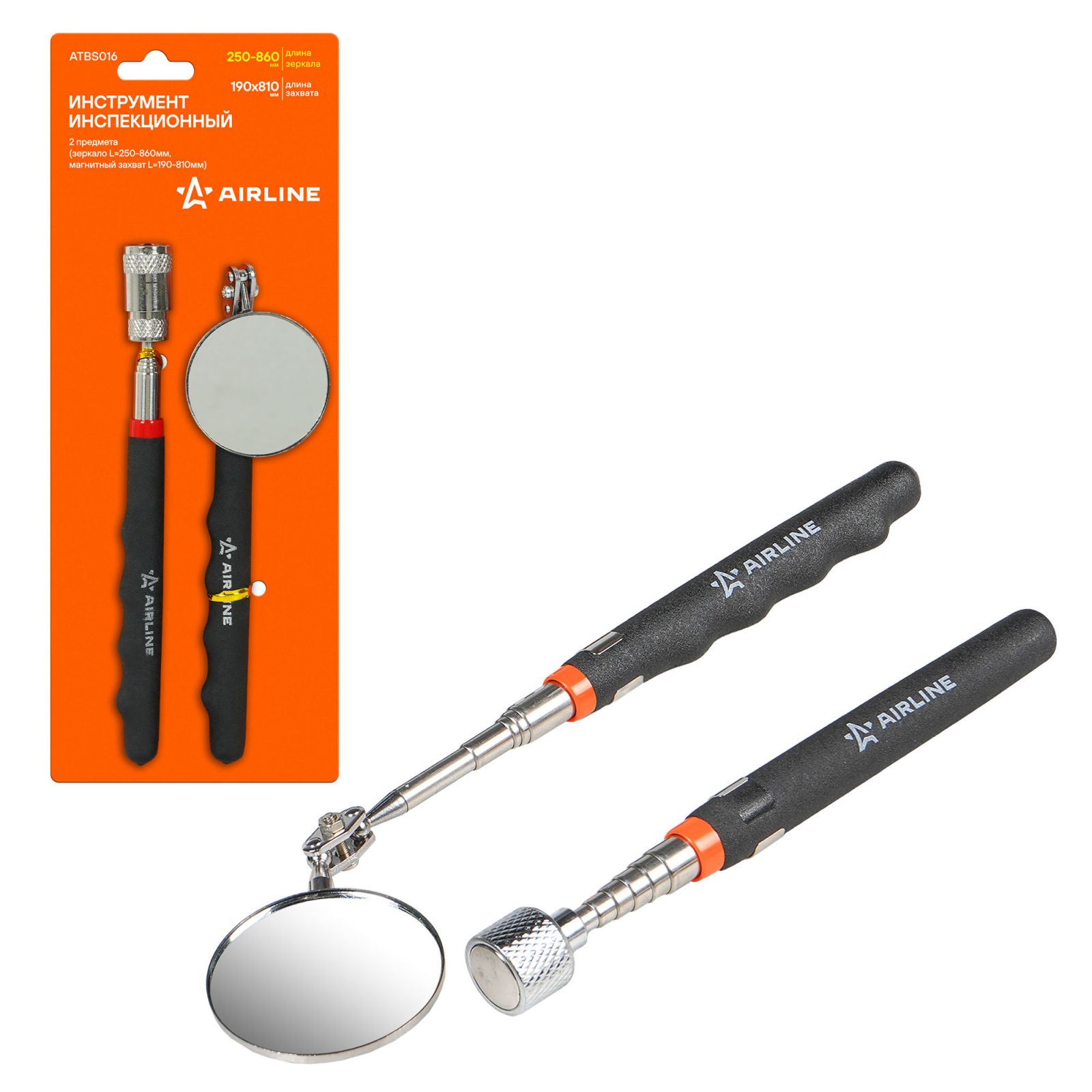Инструмент инспекционный 2 пр. (зеркало L=250-860мм, магнитный захват L=190-810мм) (ATBS016)