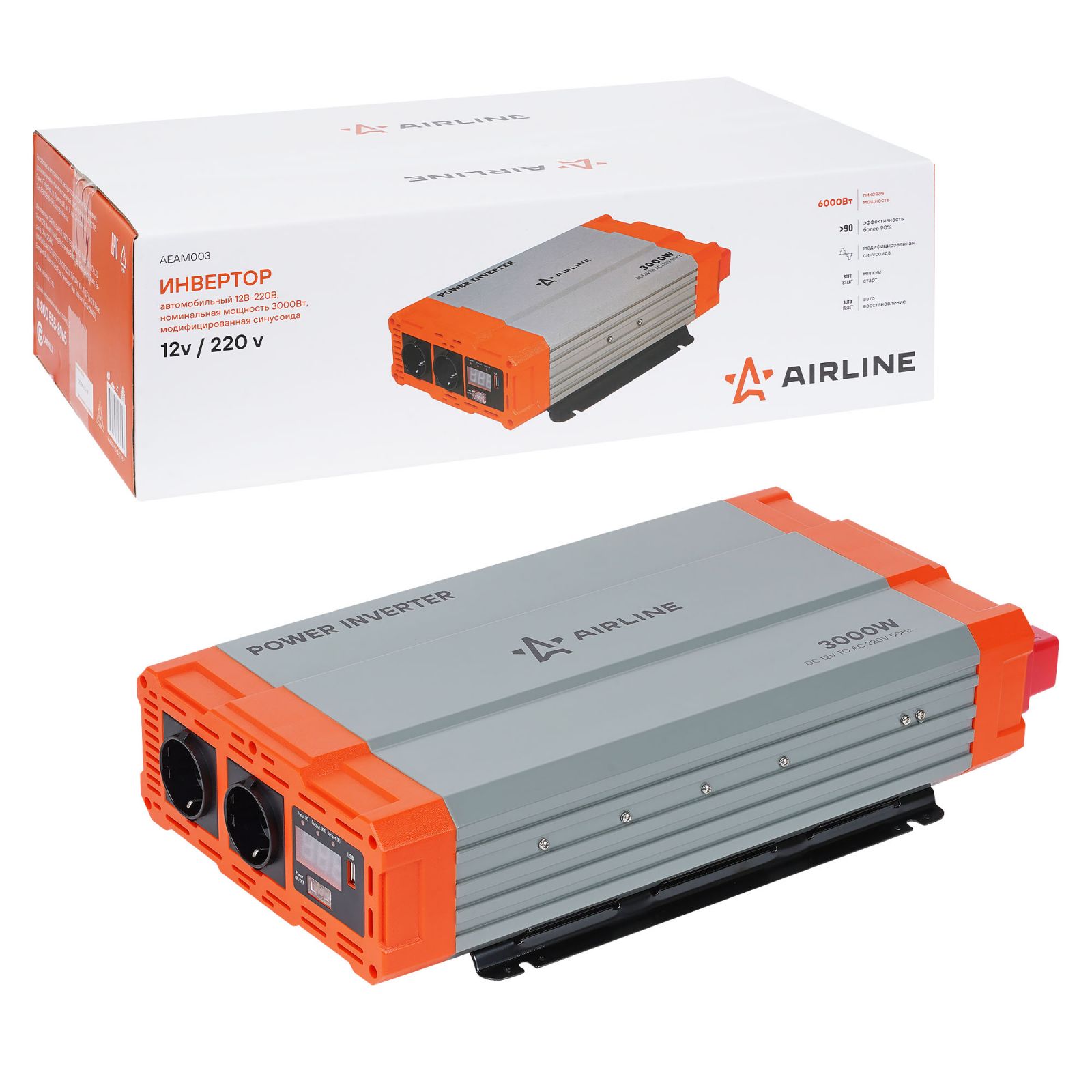 Инвертор автомобильный 12В-220В, 3000 Вт (AEAM003)