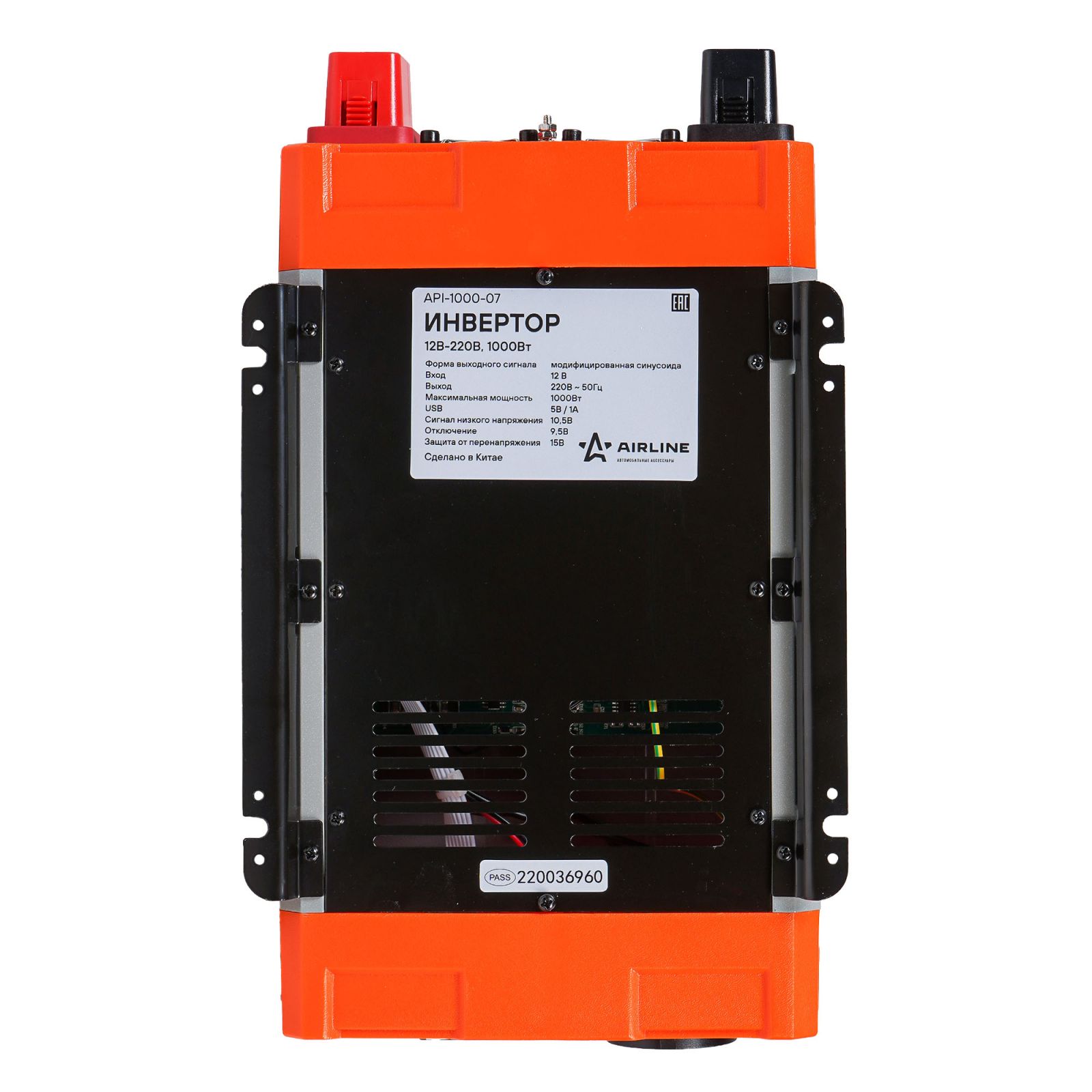 Инвертор автомобильный 12В-220В, 1000 Вт (API-1000-07)