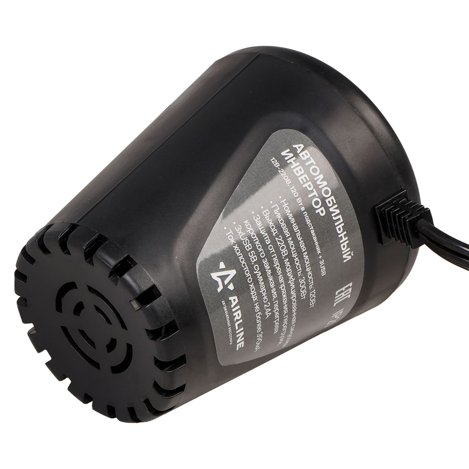 Инвертор автомобильный 12В-220В, 120 Вт в подстаканник + 3USB (API-120-00)