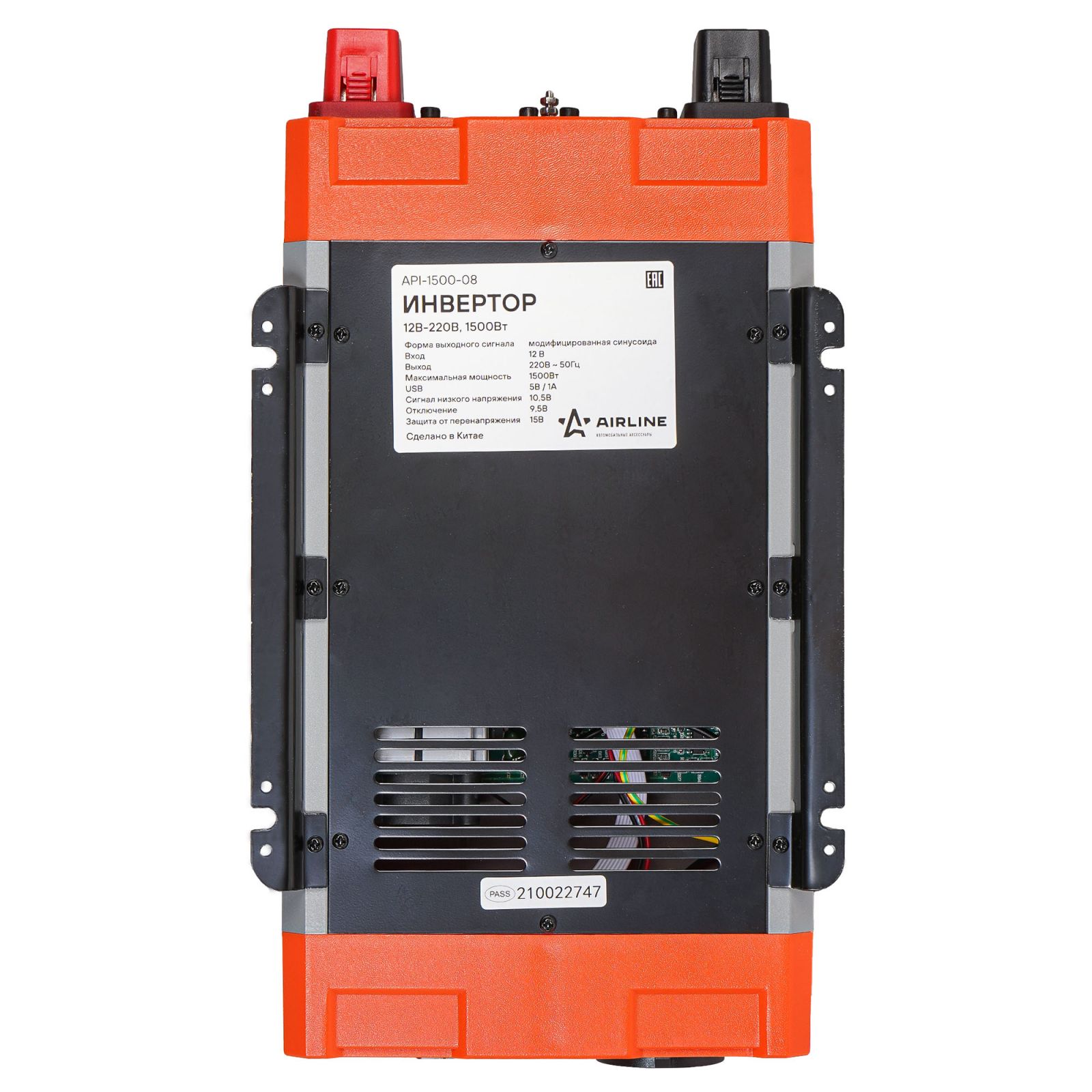 Инвертор автомобильный 12В-220В, 1500 Вт (API-1500-08)