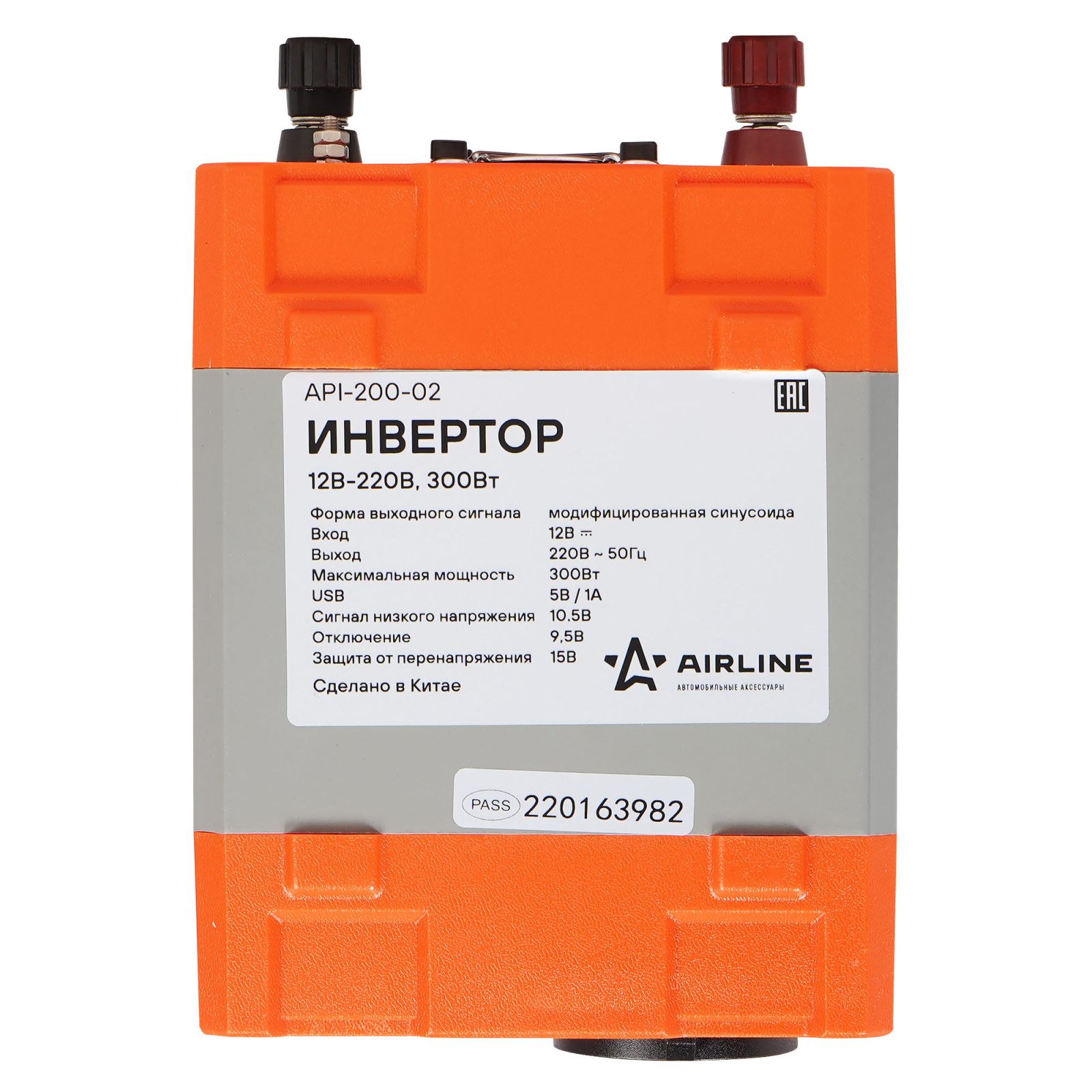 Инвертор автомобильный 12В-220В, 300 Вт (API-200-02)