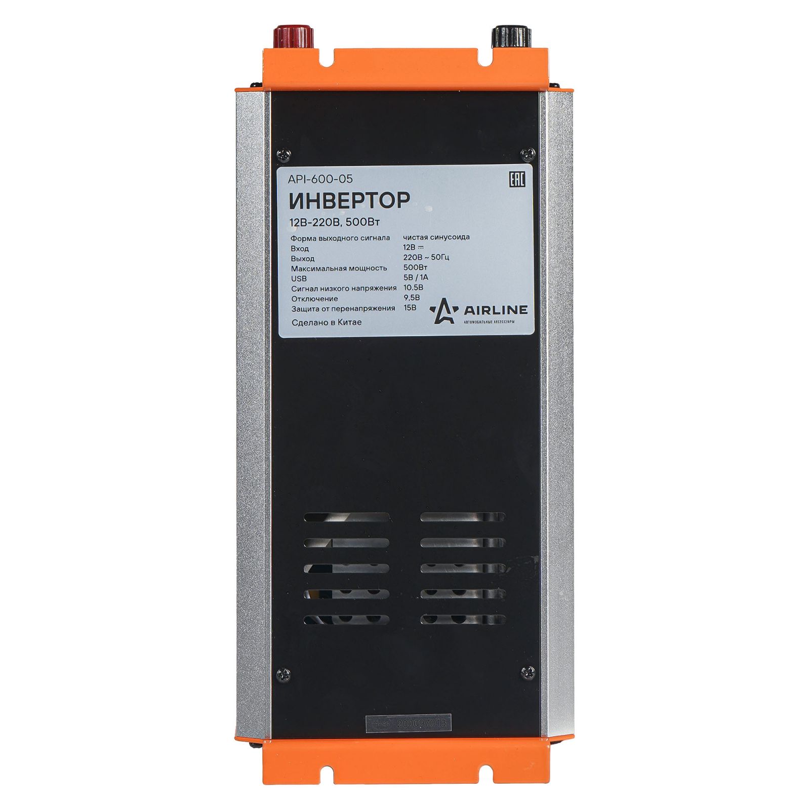 Инвертор автомобильный 12В-220В, 500 Вт чистый синус (API-600-05)