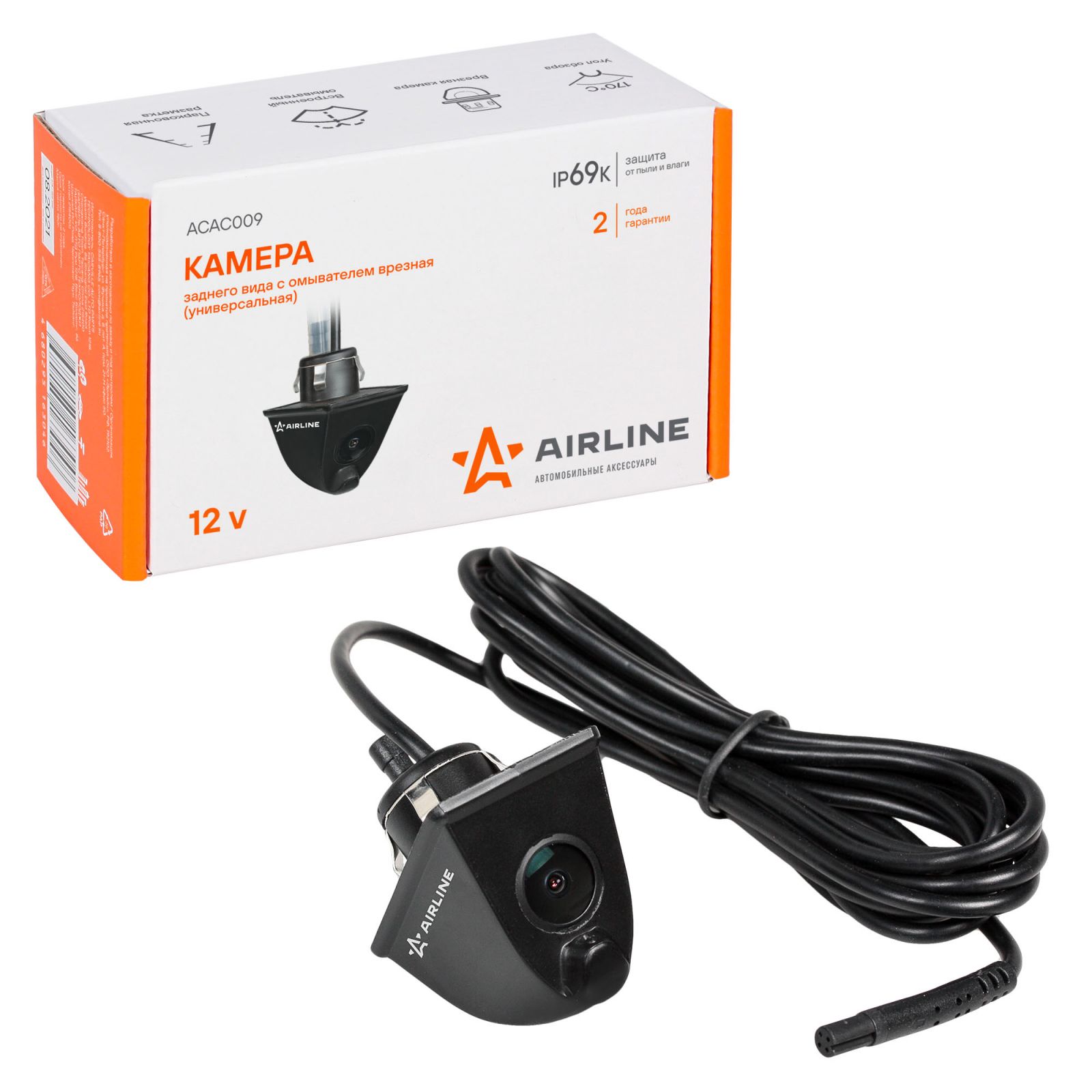 Камера заднего вида с омывателем врезная (универсальная) (ACAC009)
