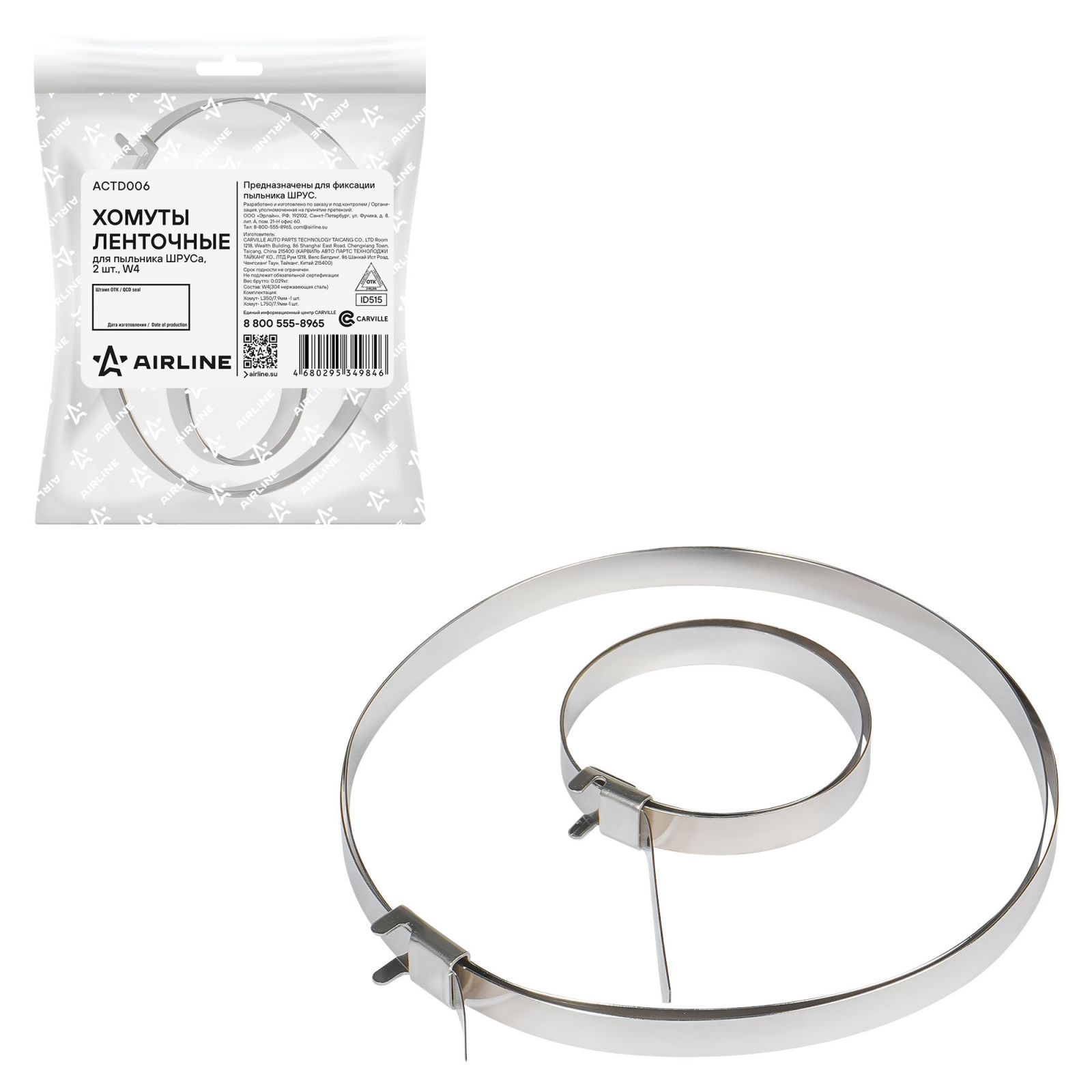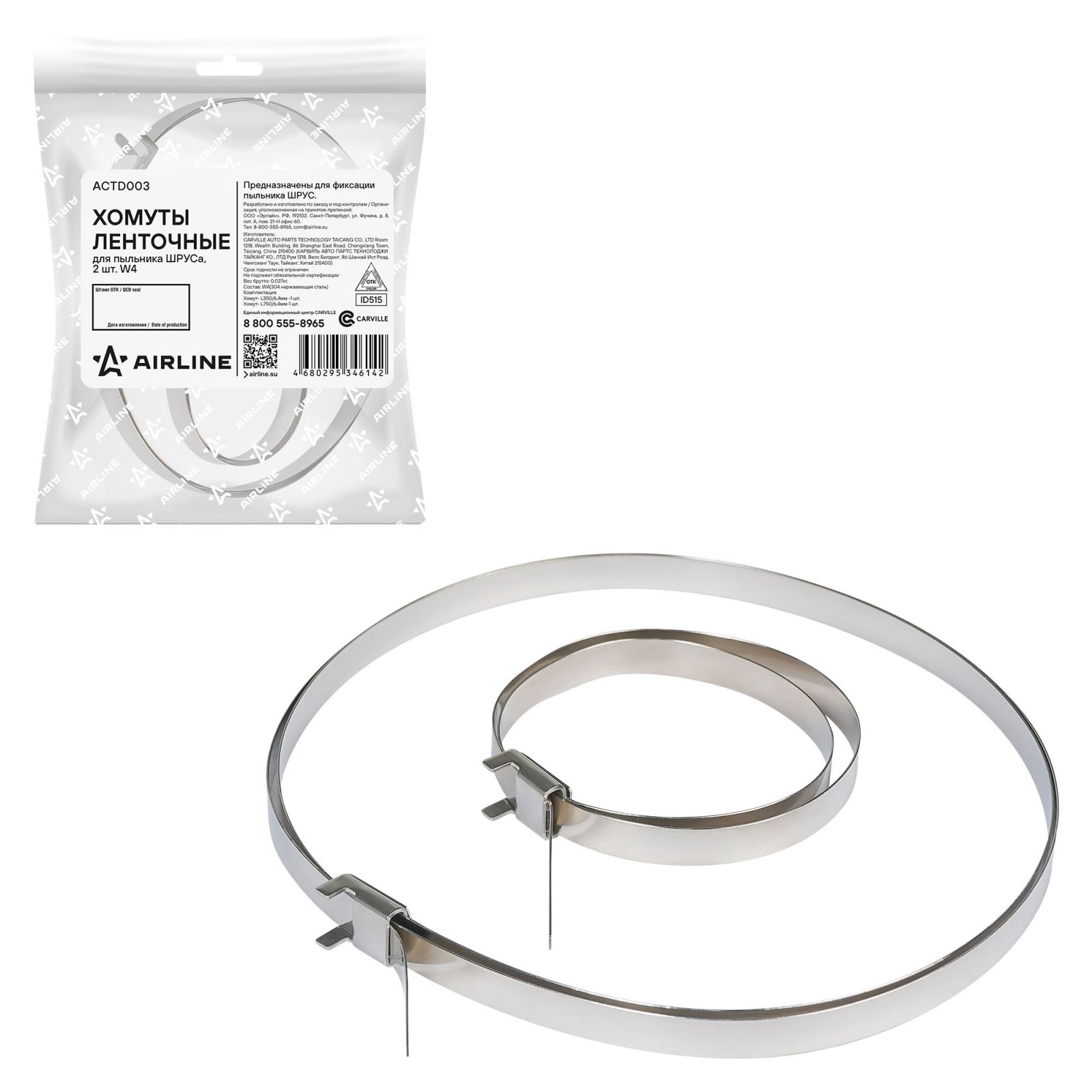 Хомуты ленточные 2 шт.(L350/6,4мм, L750/6,4мм) для пыльника ШРУСа, W4(304 нерж.) (ACTD003)