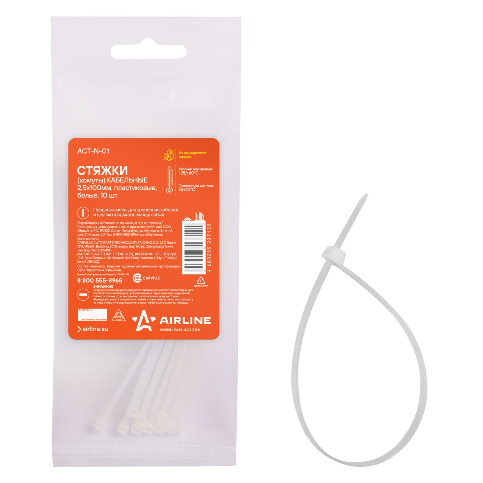 Стяжки (хомуты) кабельные 2,5*100 мм, пластиковые, белые, 10 шт. (ACT-N-01)