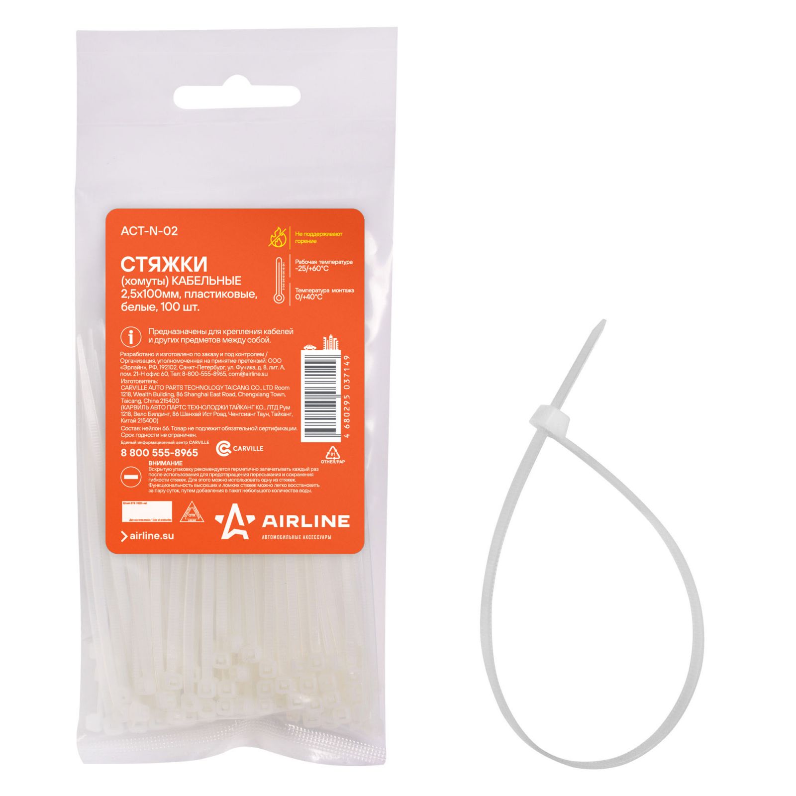 Стяжки (хомуты) кабельные 2,5*100 мм, пластиковые, белые, 100 шт. (ACT-N-02)