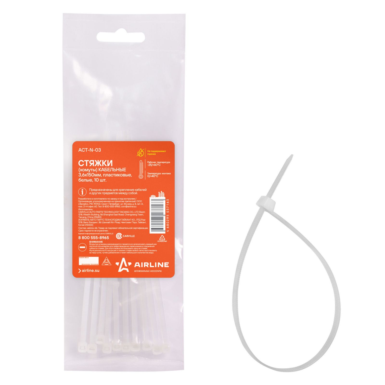 Стяжки (хомуты) кабельные 3,6*150 мм, пластиковые, белые, 10 шт. (ACT-N-03)