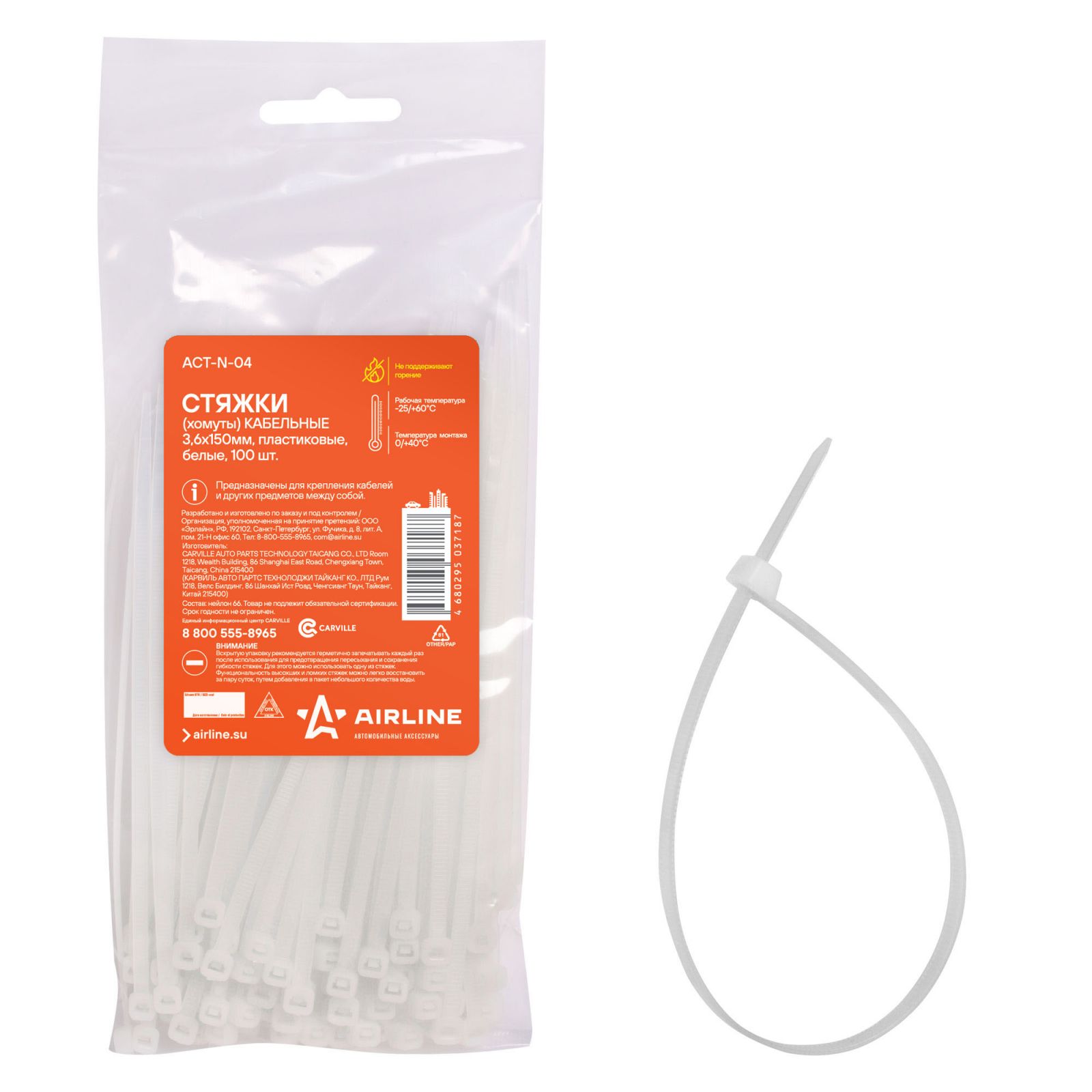 Стяжки (хомуты) кабельные 3,6*150 мм, пластиковые, белые, 100 шт. (ACT-N-04)