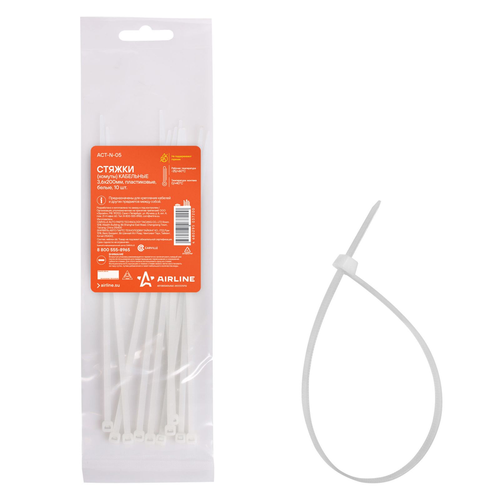 Стяжки (хомуты) кабельные 3,6*200 мм, пластиковые, белые, 10 шт. (ACT-N-05)