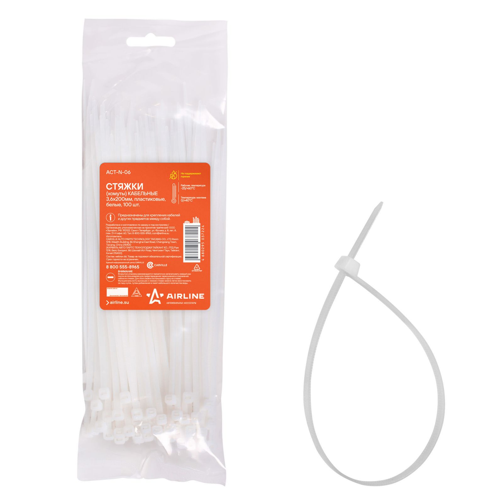 Стяжки (хомуты) кабельные 3,6*200 мм, пластиковые, белые, 100 шт. (ACT-N-06)