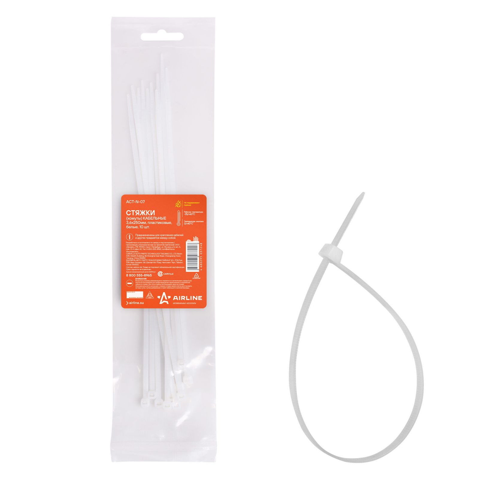 Стяжки (хомуты) кабельные 3,6*250 мм, пластиковые, белые, 10 шт. (ACT-N-07)