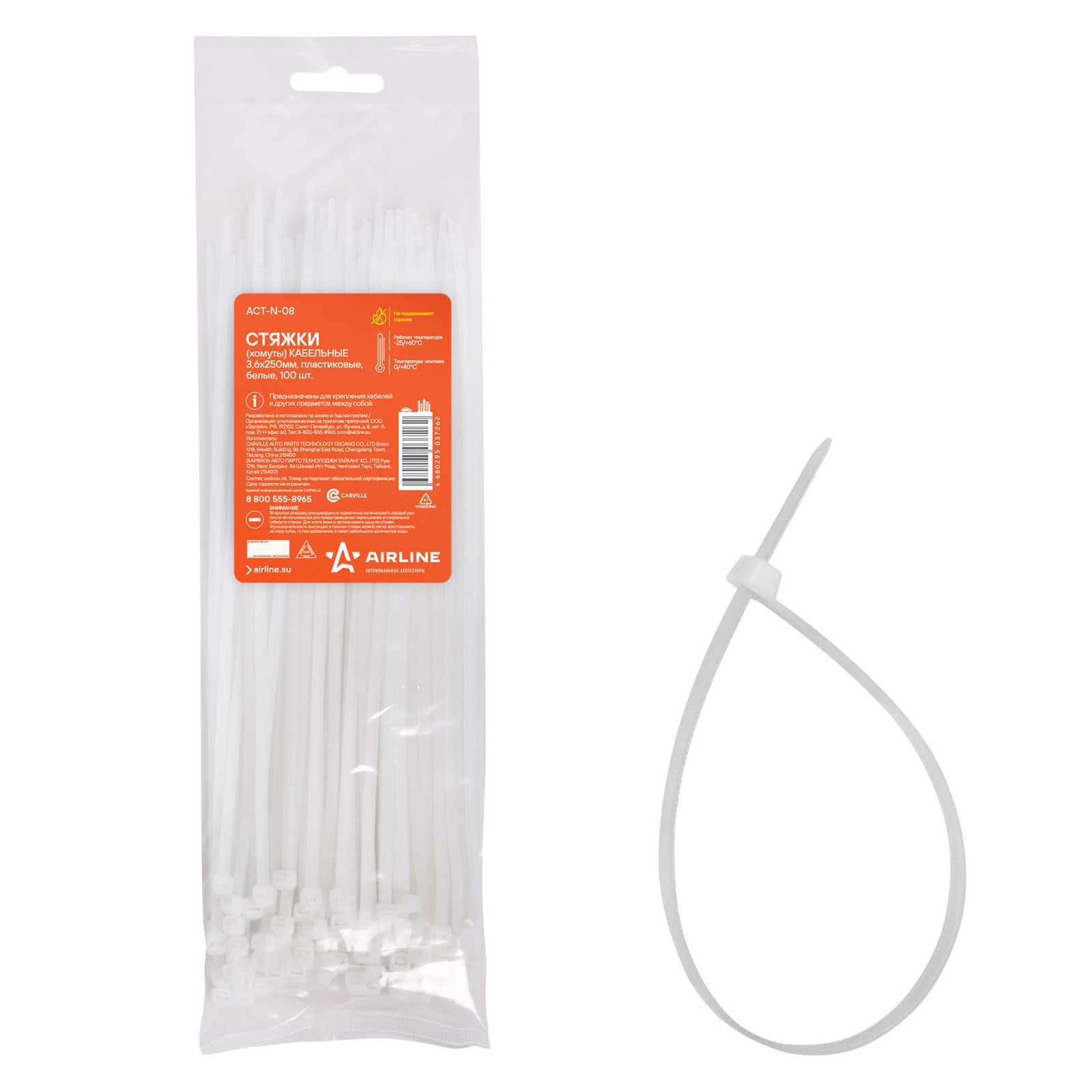 Стяжки (хомуты) кабельные 3,6*250 мм, пластиковые, белые, 100 шт. (ACT-N-08)