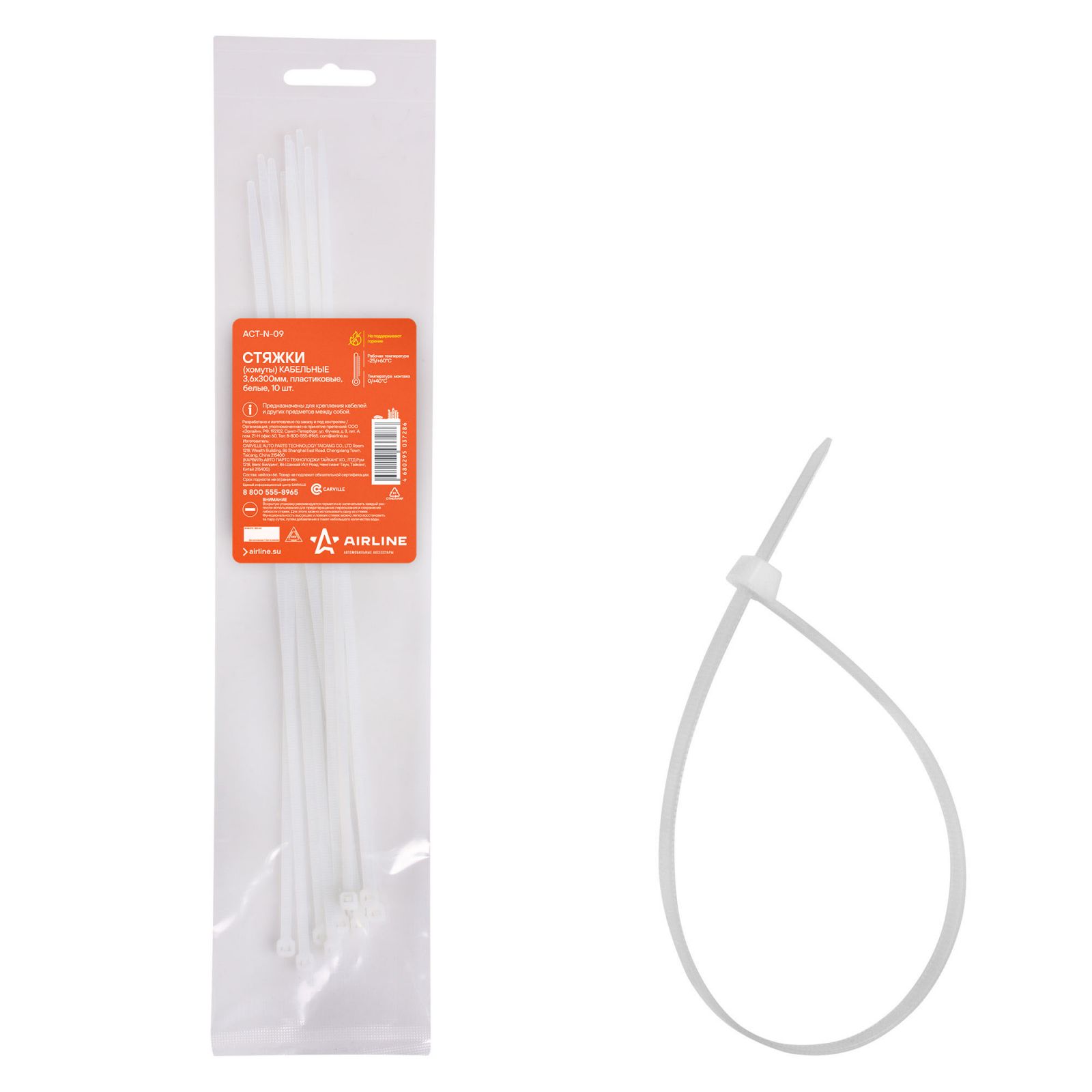 Стяжки (хомуты) кабельные 3,6*300 мм, пластиковые, белые, 10 шт. (ACT-N-09)