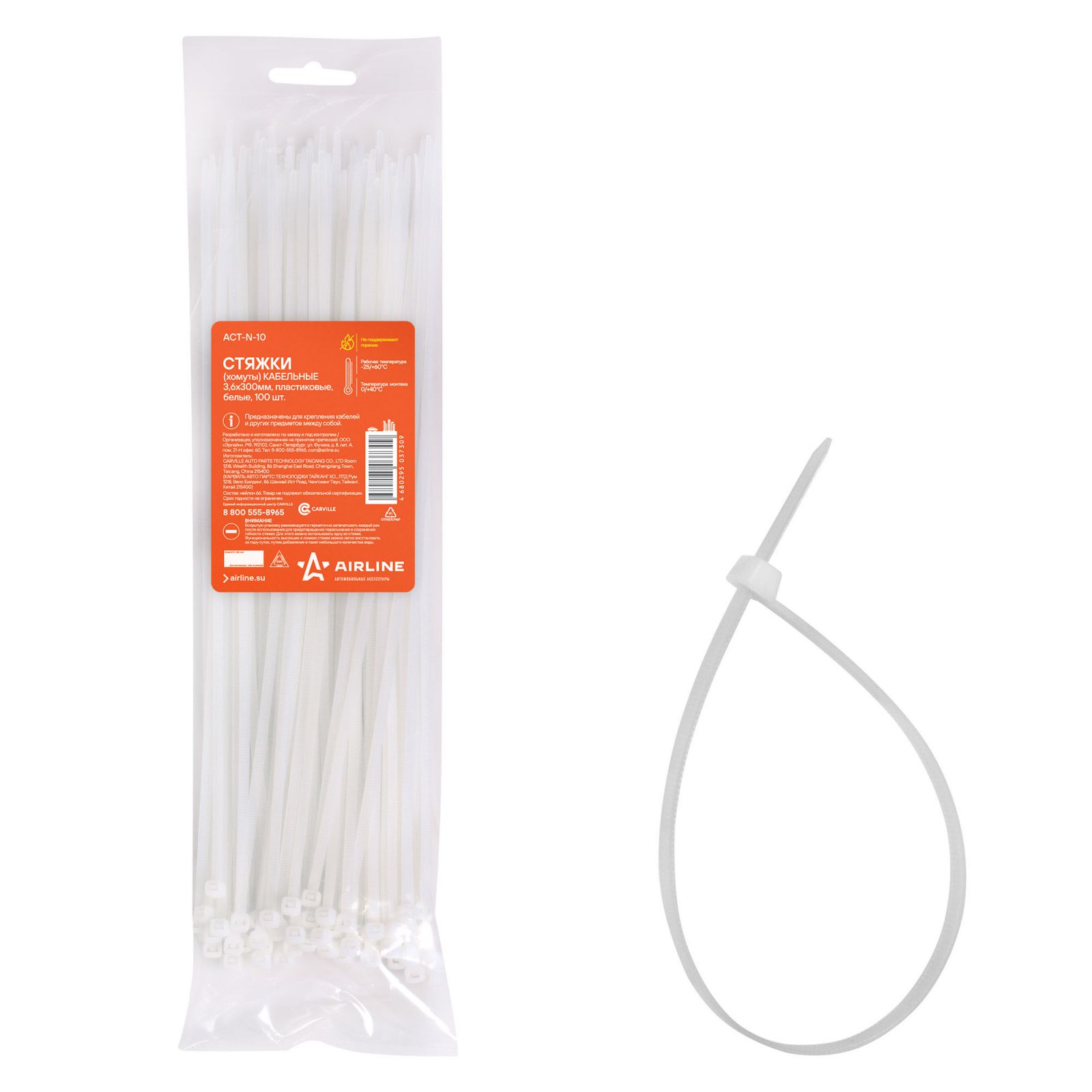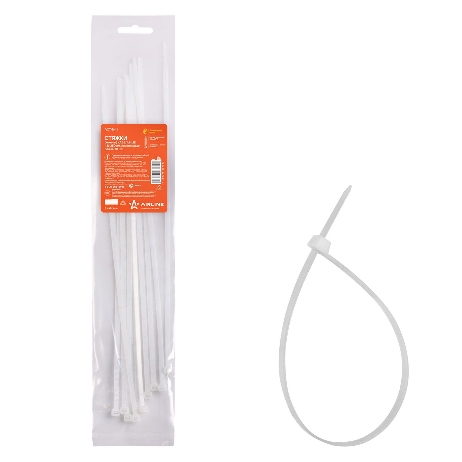 Стяжки (хомуты) кабельные 4,8*350 мм, пластиковые, белые, 10 шт. (ACT-N-11)