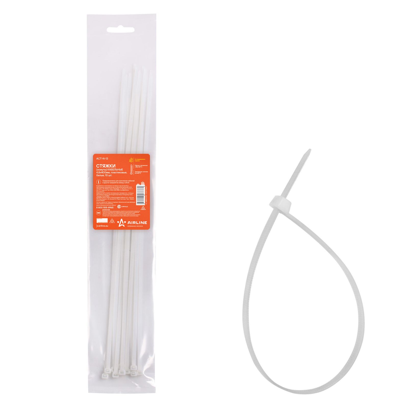 Стяжки (хомуты) кабельные 4,8*400 мм, пластиковые, белые, 10 шт. (ACT-N-13)