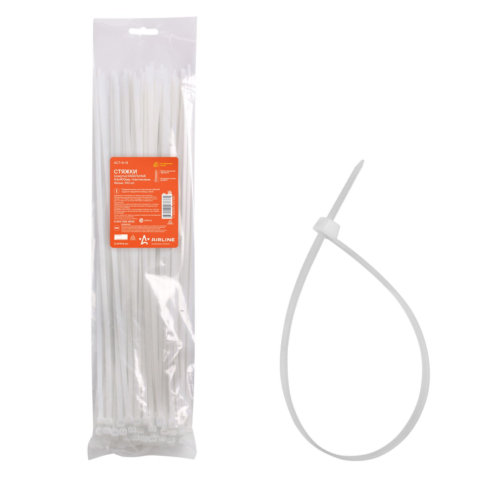 Стяжки (хомуты) кабельные 4,8*400 мм, пластиковые, белые, 100 шт. (ACT-N-14)