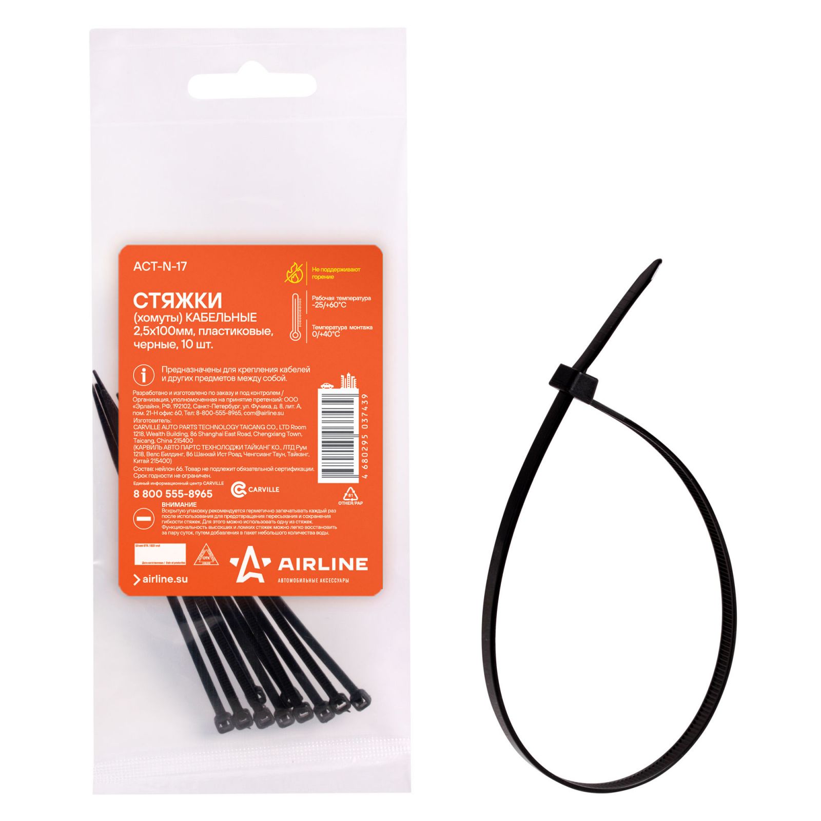 Стяжки (хомуты) кабельные 2,5*100 мм, пластиковые, черные, 10 шт. (ACT-N-17)