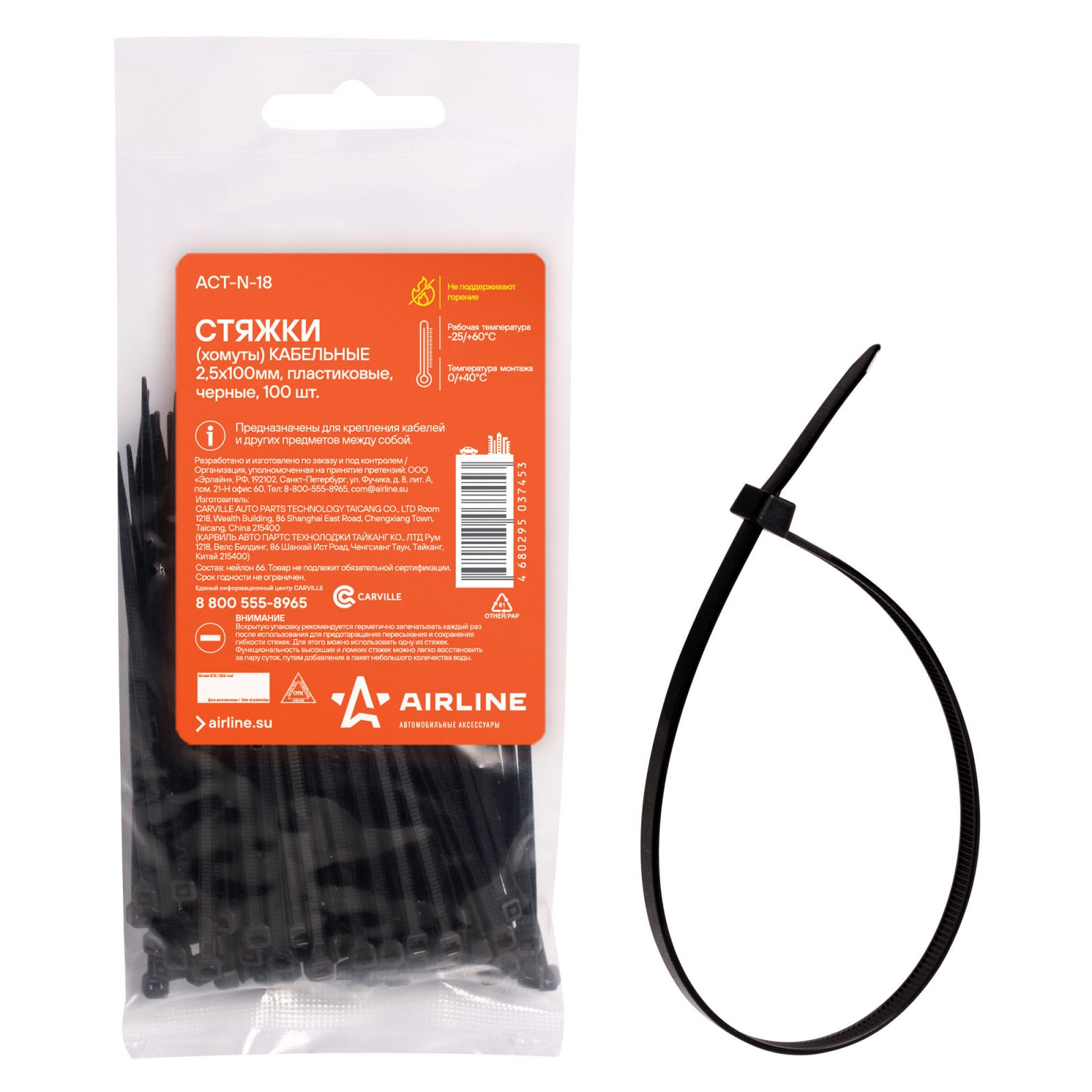 Стяжки (хомуты) кабельные 2,5*100 мм, пластиковые, черные, 100 шт. (ACT-N-18)