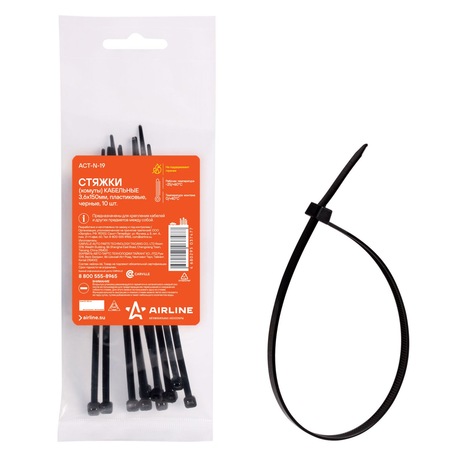 Стяжки (хомуты) кабельные 3,6*150 мм, пластиковые, черные, 10 шт. (ACT-N-19)