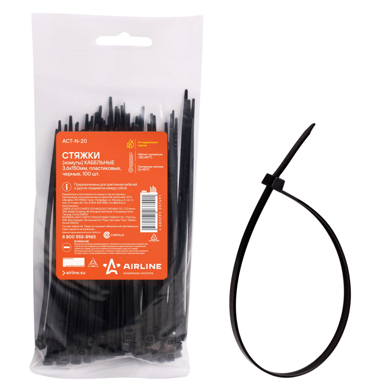 Стяжки (хомуты) кабельные 3,6*150 мм, пластиковые, черные, 100 шт. (ACT-N-20)