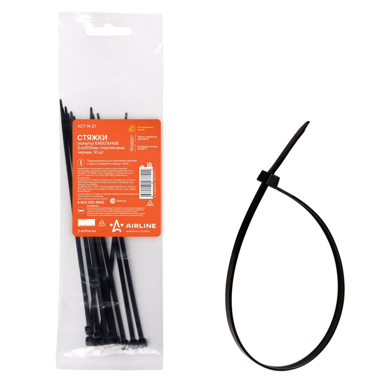 Стяжки (хомуты) кабельные 3,6*200 мм, пластиковые, черные, 10 шт. (ACT-N-21)