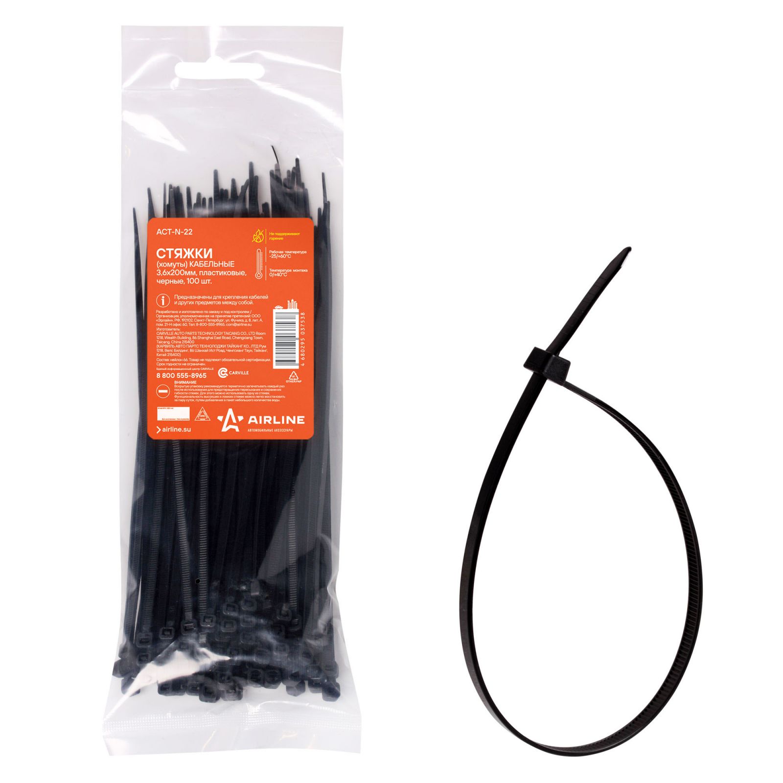 Стяжки (хомуты) кабельные 3,6*200 мм, пластиковые, черные, 100 шт. (ACT-N-22)