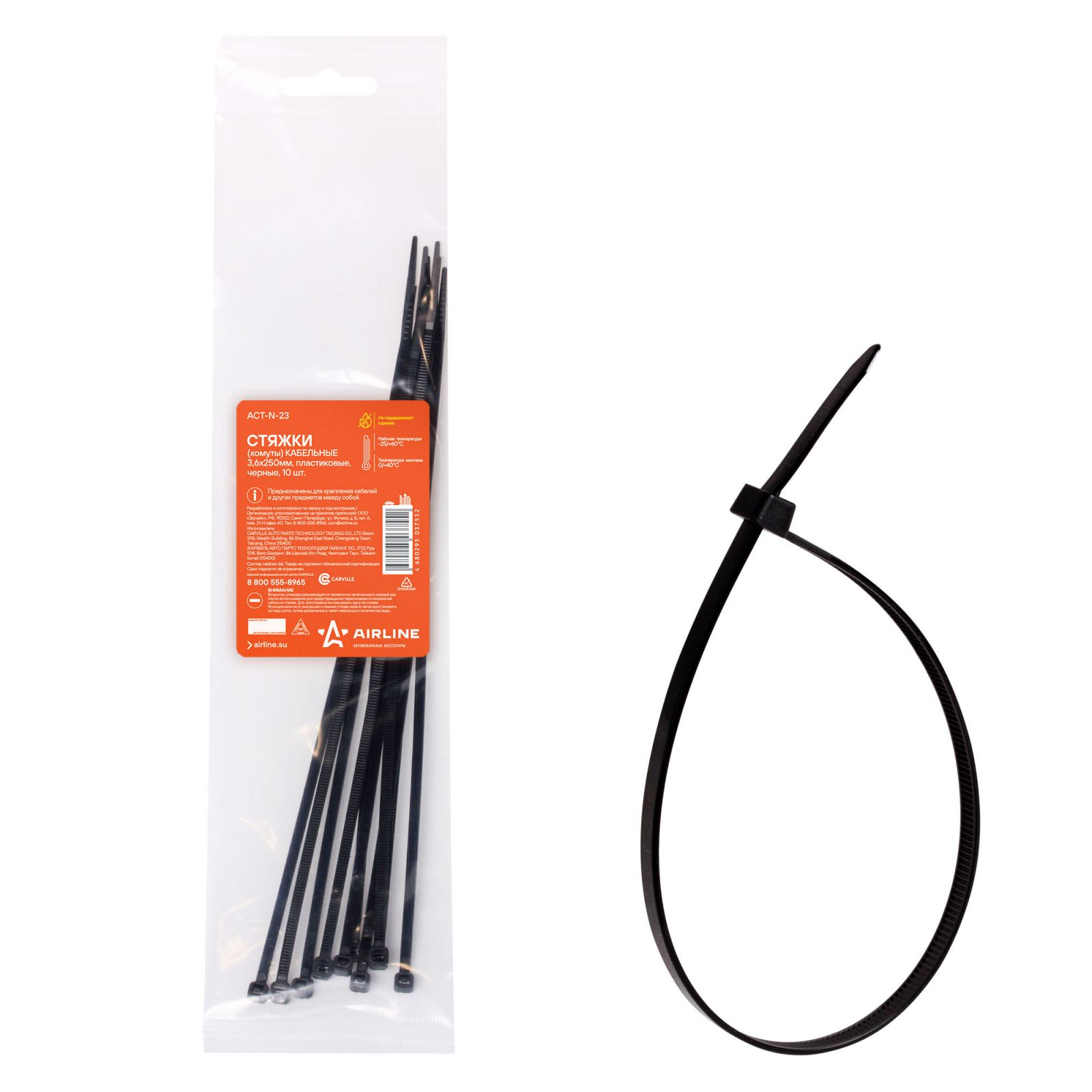 Стяжки (хомуты) кабельные 3,6*250 мм, пластиковые, черные, 10 шт. (ACT-N-23)