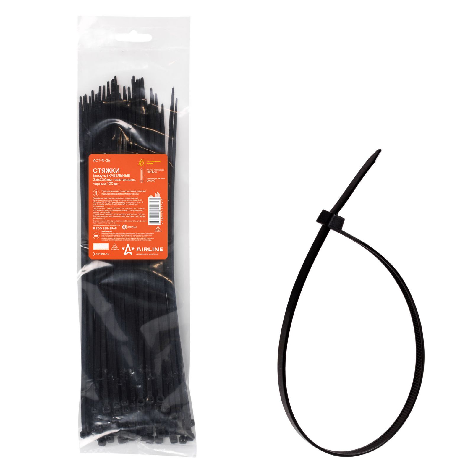 Стяжки (хомуты) кабельные 3,6*300 мм, пластиковые, черные, 100 шт. (ACT-N-26)