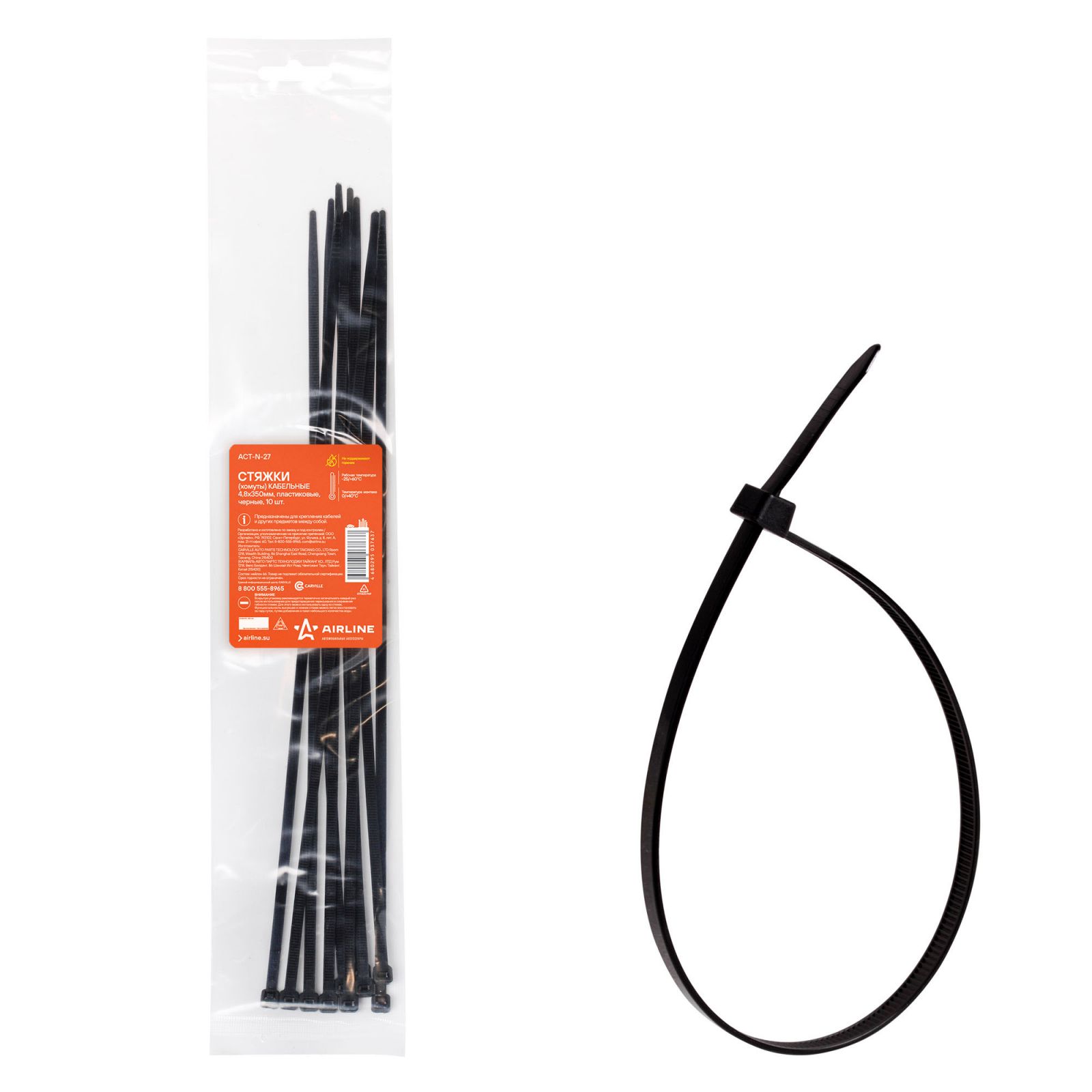 Стяжки (хомуты) кабельные 4,8*350 мм, пластиковые, черные, 10 шт. (ACT-N-27)