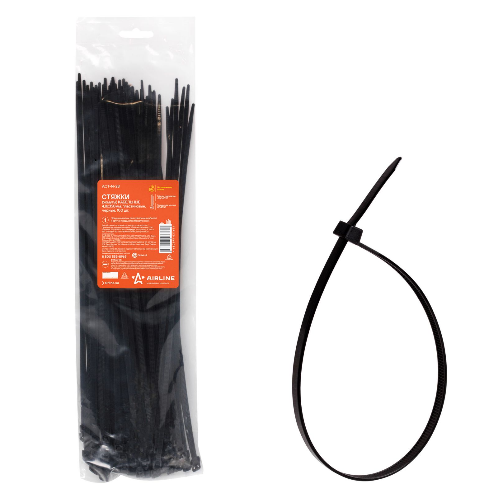 Стяжки (хомуты) кабельные 4,8*350 мм, пластиковые, черные, 100 шт. (ACT-N-28)