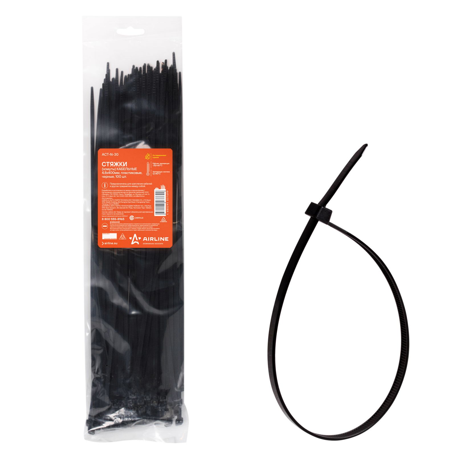 Стяжки (хомуты) кабельные 4,8*400 мм, пластиковые, черные, 100 шт. (ACT-N-30)